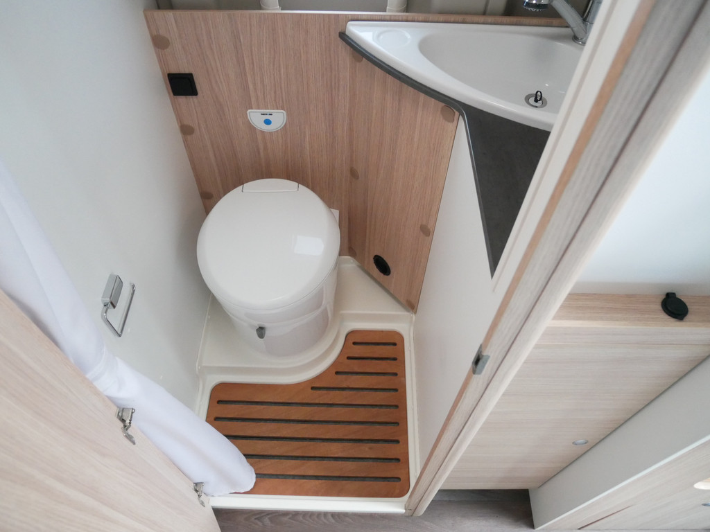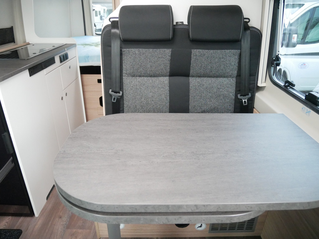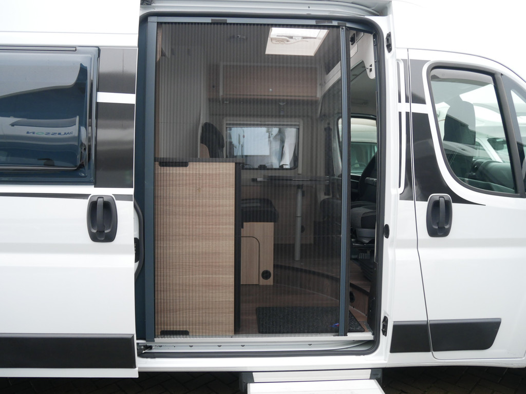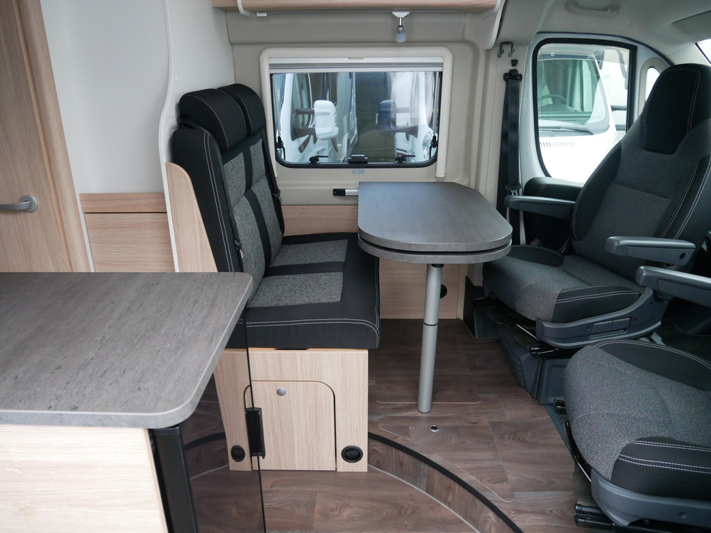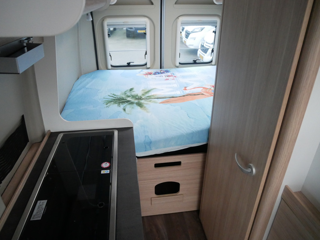 De camper is onder andere voorzien van een mooie afwerking met stoffen bekleding, keuken met 2 pits kooktoestel, dwarsbed, cruise control, Truma kachel op gas, boiler op gas, compressor koelkast, modern en luxe ogende tinten in het interieur, wasbak, motorairco, radio/mp-3 speler, bluetooth, zeer veel opbergmogelijkheden door de vele bovenkasten, toiletruimte met douche, een zit met tafel, verduistering en entree hordeur.