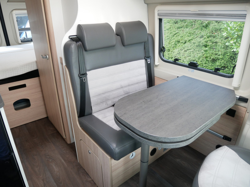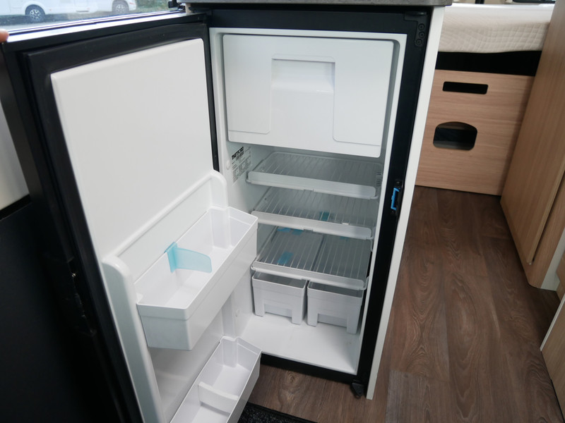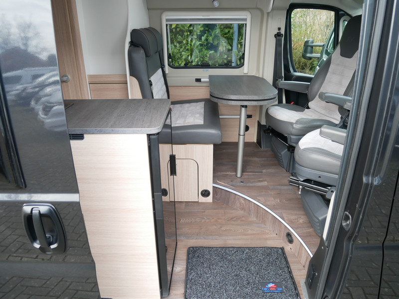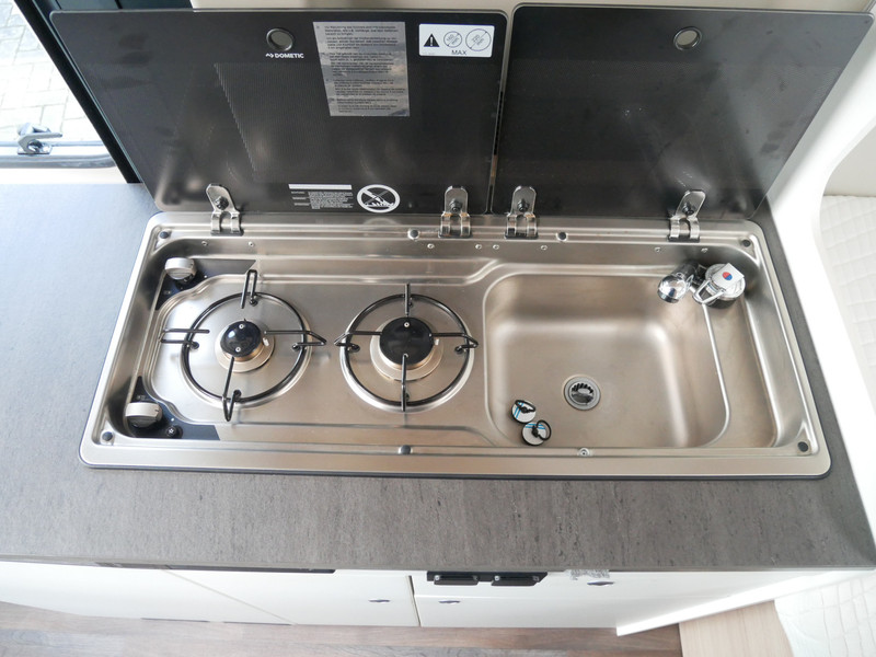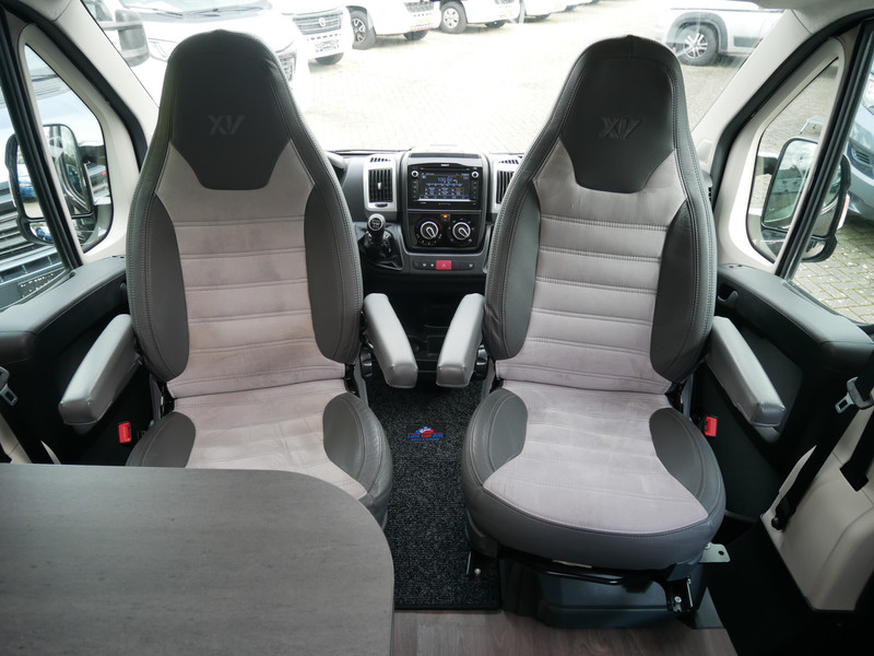 De camper is onder andere voorzien van stoffen bekleding, lichte en zeer moderne houtlook in het interieur, keuken met 2 pits kooktoestel, wasbak, XL compressor koelkast, hordeur entree, dwarsbed, motorairco, boiler, cruise control, Truma kachel op gas, achteruitrijcamera, zeer veel opbergmogelijkheden door de vele kasten, badkamer met douche en toilet.