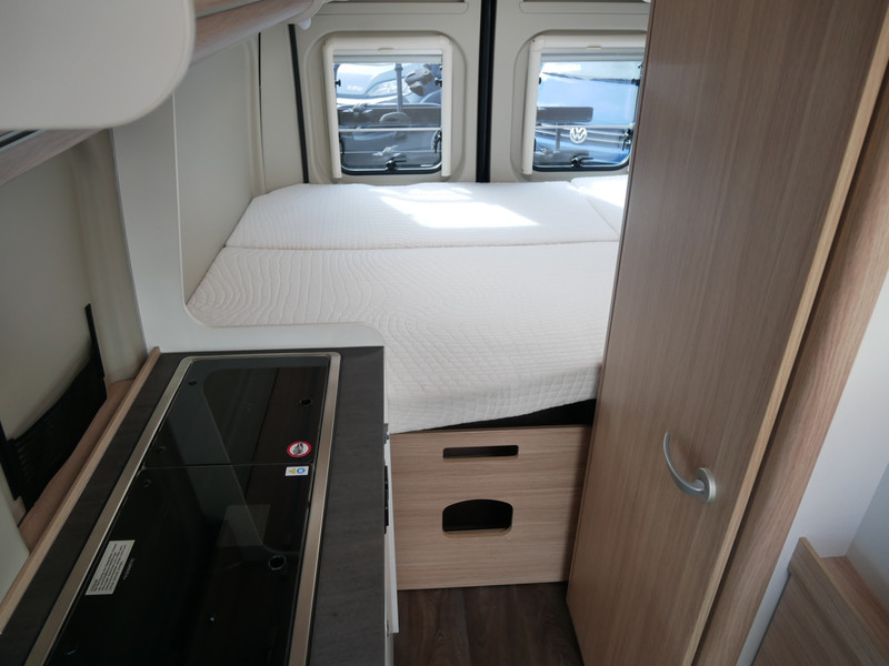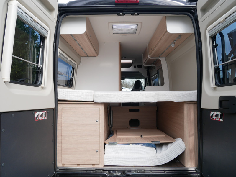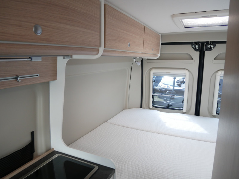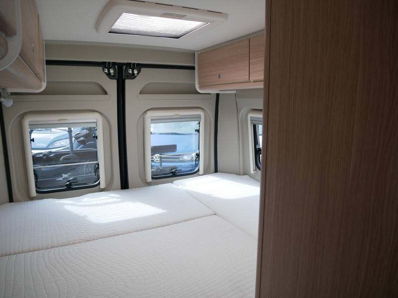 De camper heeft een stahoogte van 189 cm en een dwarsbed 155 x 195 cm.