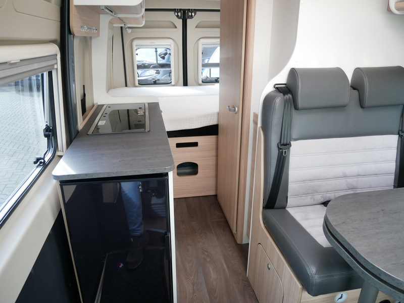 De camper is onder andere voorzien van stoffen bekleding, lichte en zeer moderne houtlook in het interieur, keuken met 2 pits kooktoestel, wasbak, XL compressor koelkast, hordeur entree, dwarsbed, motorairco, boiler, cruise control, Truma kachel op gas, achteruitrijcamera, zeer veel opbergmogelijkheden door de vele kasten, badkamer met douche en toilet.