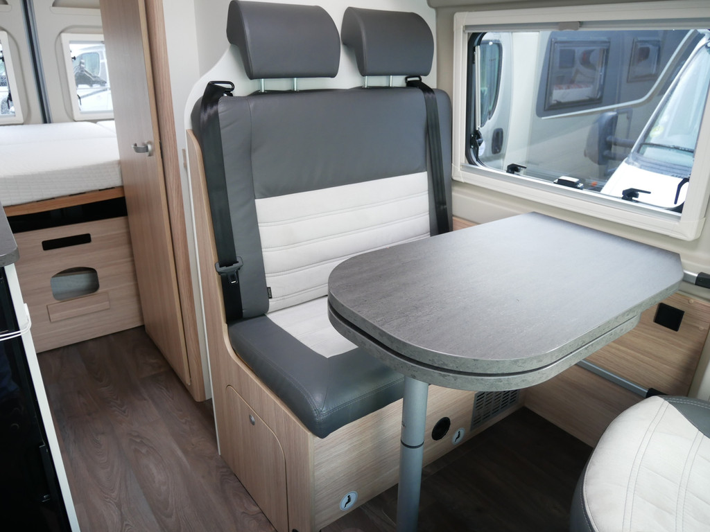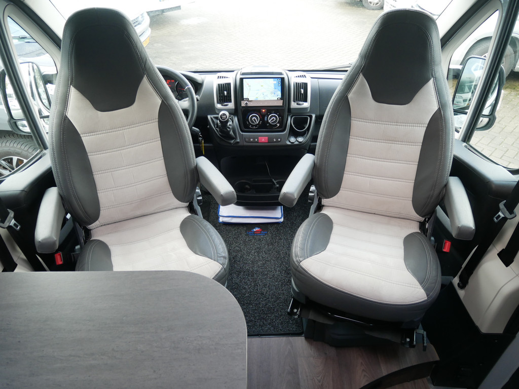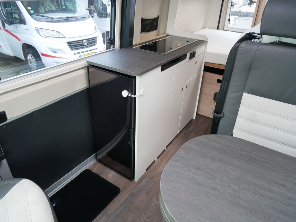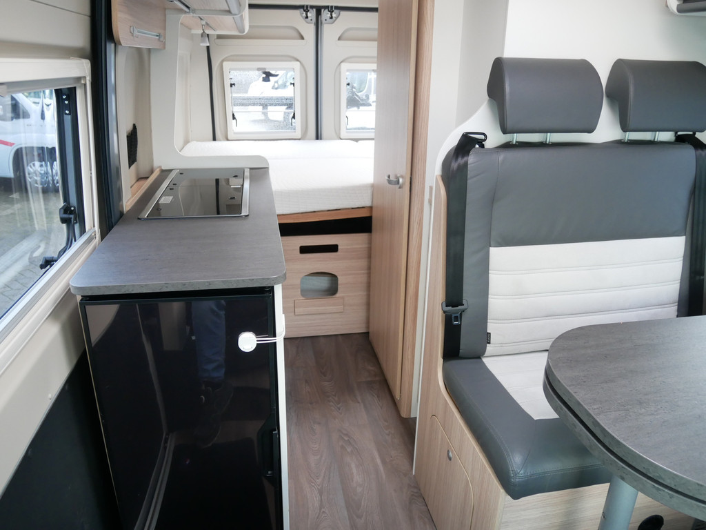 De camper is onder andere voorzien van stoffen bekleding, lichte en moderne houtlook in het interieur, keuken met 2 pits kooktoestel, wasbak, compressor koelkast, hordeur entree, dwarsbed, motorairco, boiler, cruise control, Truma kachel op gas, achteruitrijcamera, zeer veel opbergmogelijkheden door de vele kasten, badkamer met douche en toilet en een mooie grijze lak.