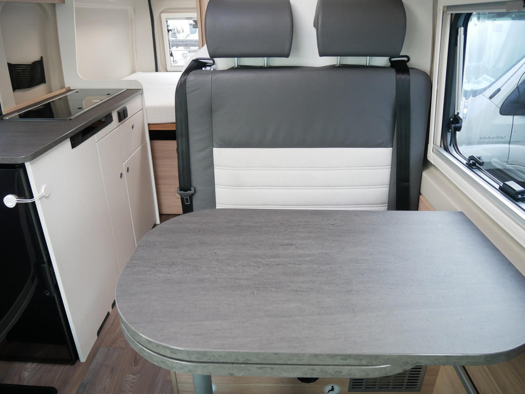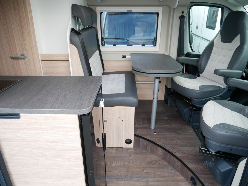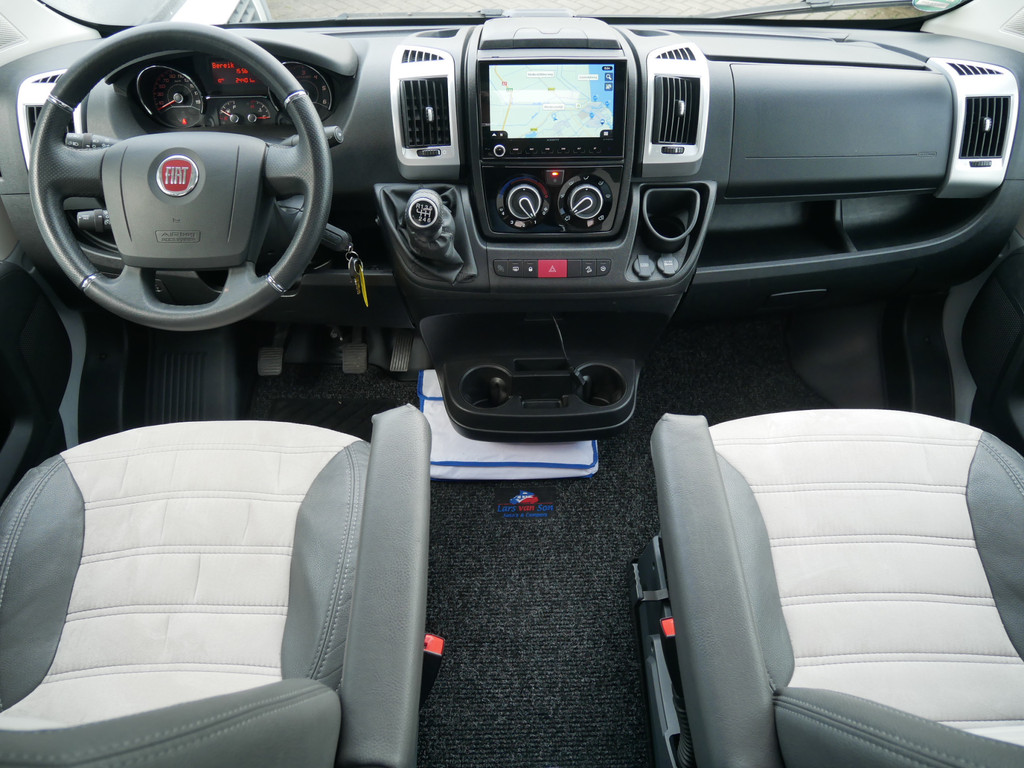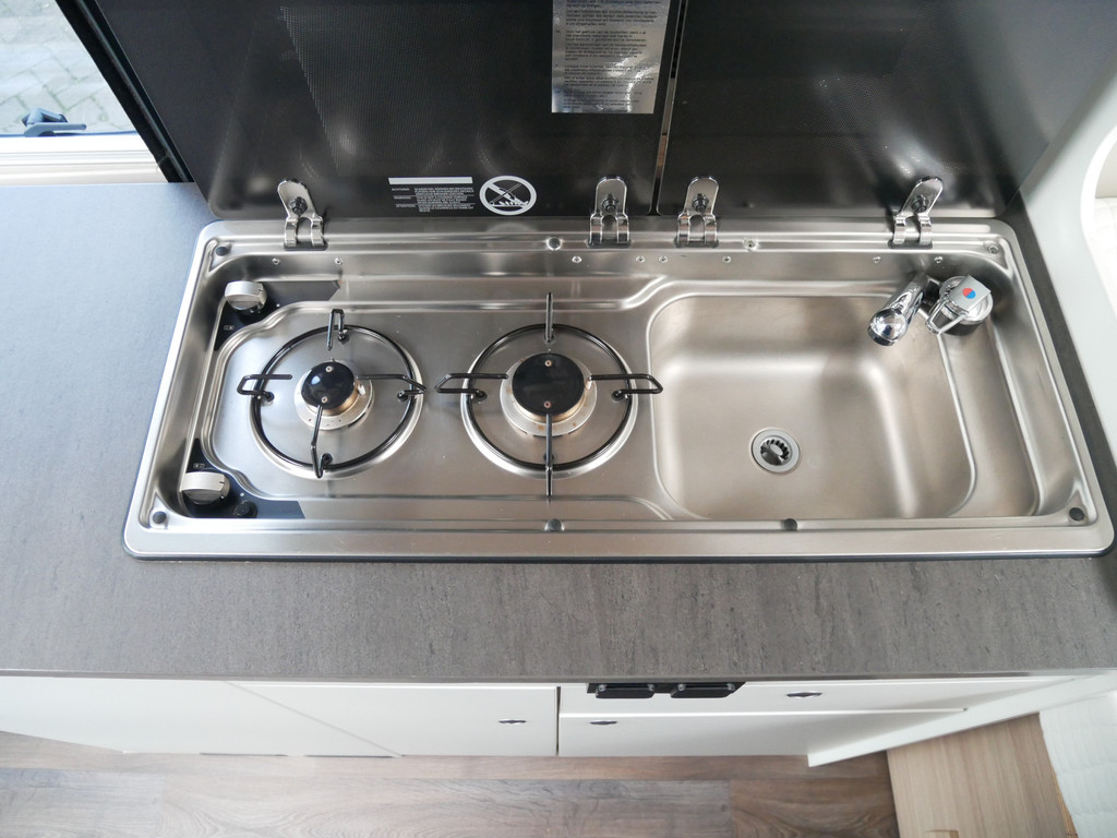 De camper is onder andere voorzien van stoffen bekleding, lichte en moderne houtlook in het interieur, keuken met 2 pits kooktoestel, wasbak, compressor koelkast, hordeur entree, dwarsbed, motorairco, boiler, cruise control, Truma kachel op gas, achteruitrijcamera, zeer veel opbergmogelijkheden door de vele kasten, badkamer met douche en toilet en een mooie grijze lak.