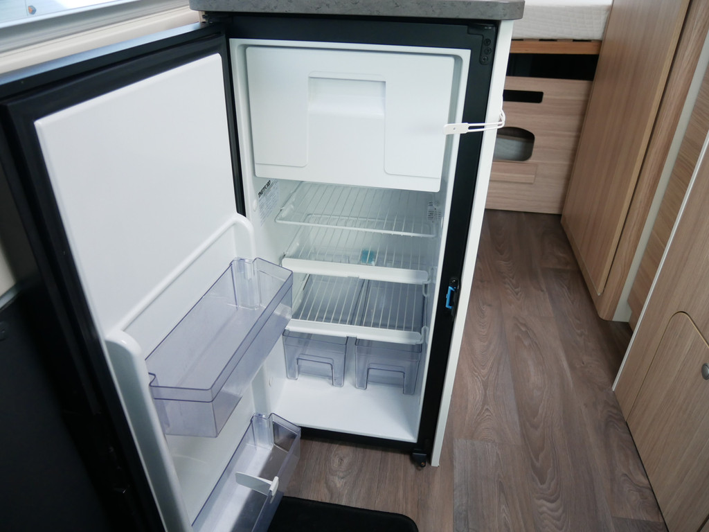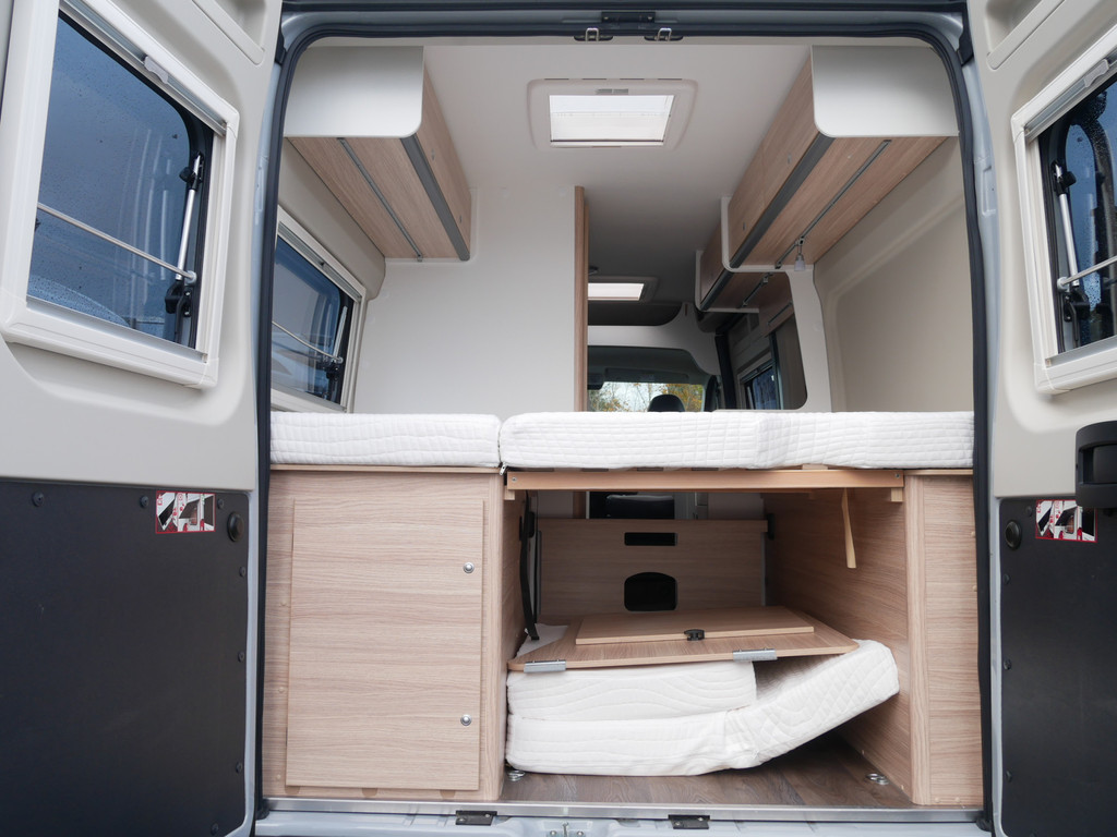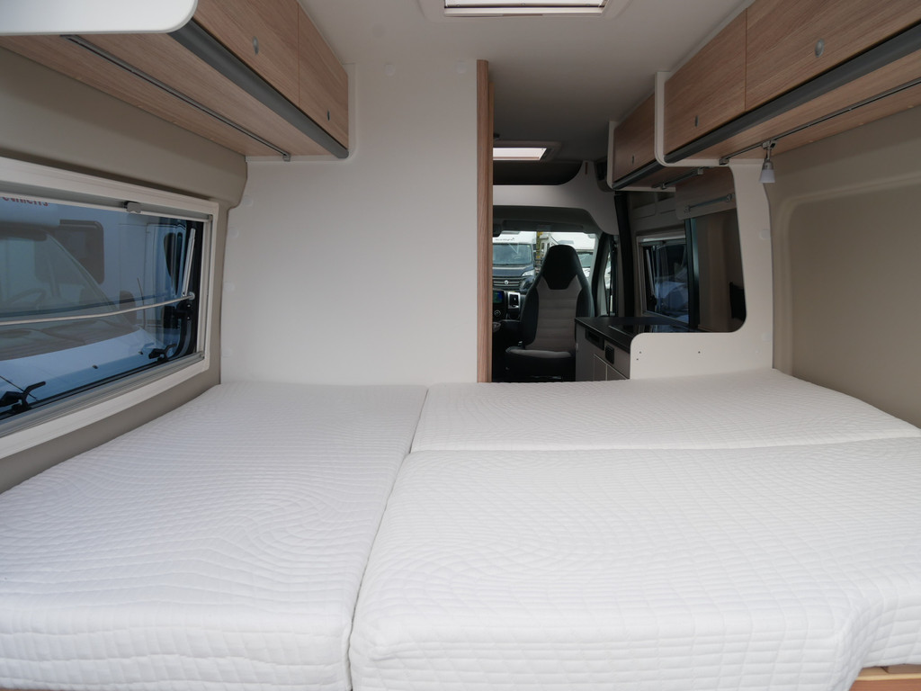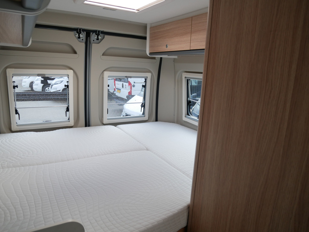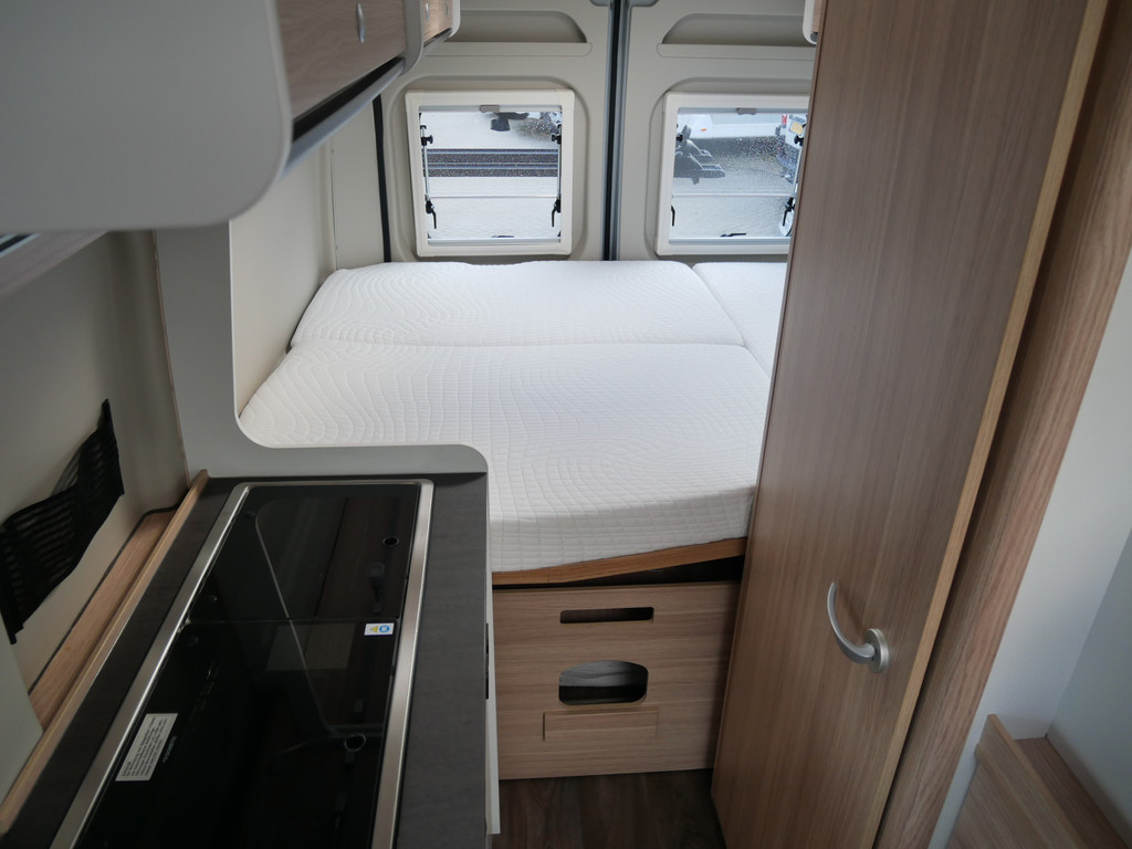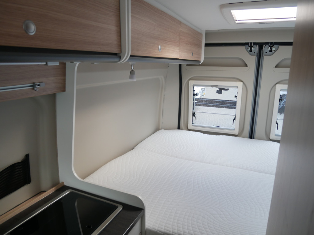 De camper heeft een stahoogte van 189 cm en een dwarsbed 155 x 195 cm.