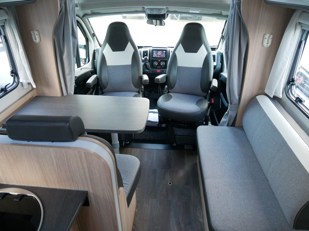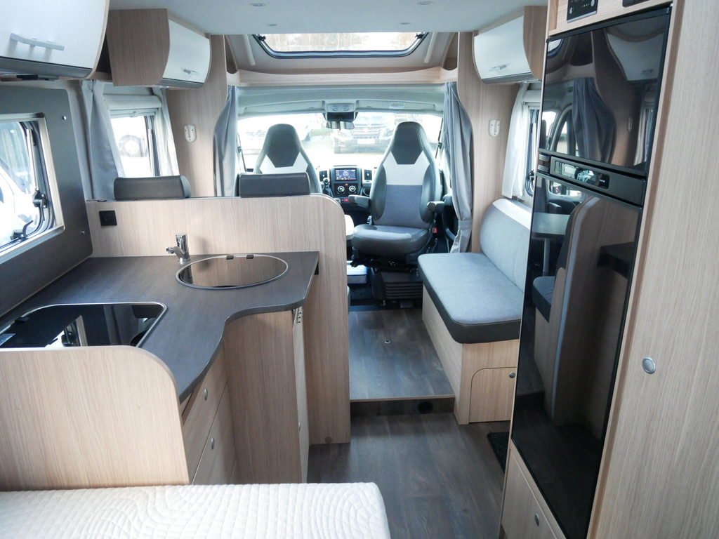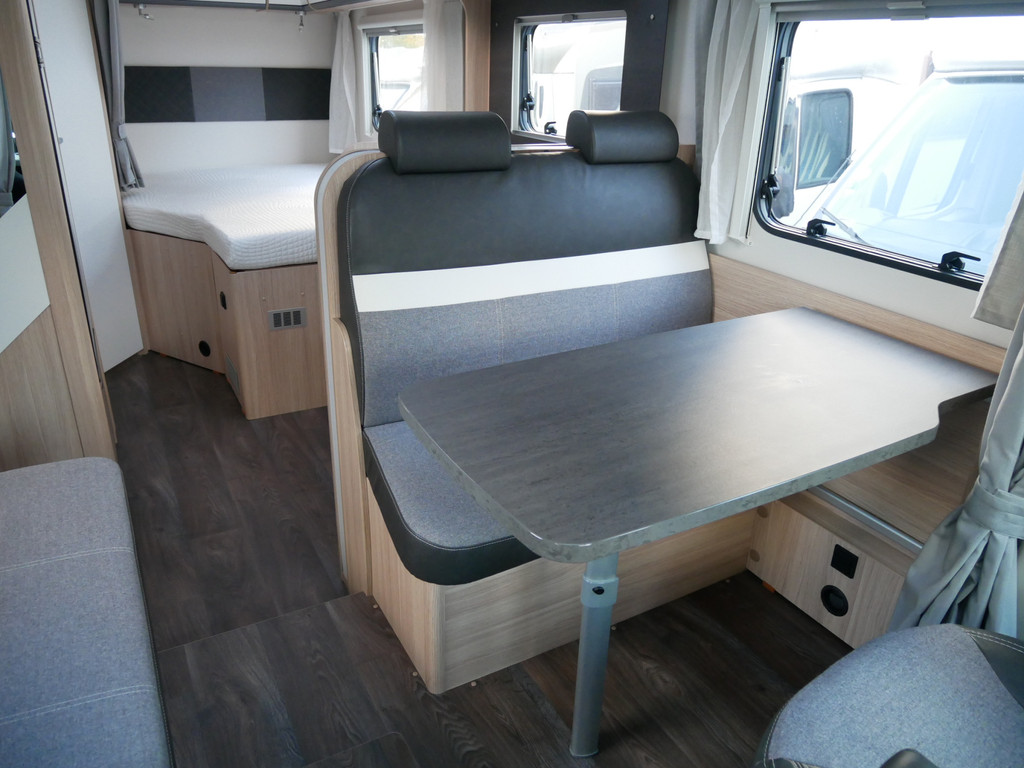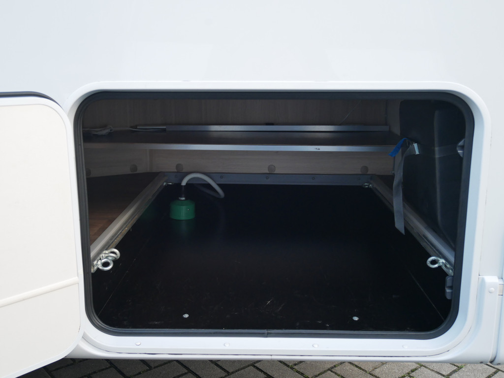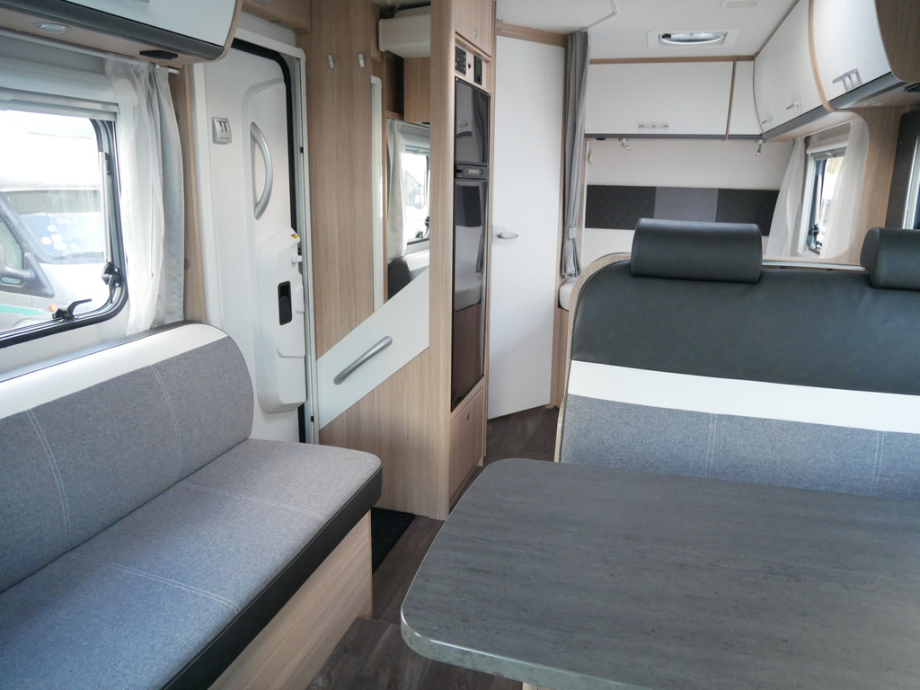De camper is onder andere voorzien van een mooie en luxe afwerking met stof beklede stoelen, moderne houtlook in het interieur, 9-Traps automaat, Truma combiketel op gas (verwarming en warm water), luxe ruime keuken met 3 pits kooktoestel, hordeur, elektrische opstap, wasbak, motorairco, zeer veel opbergmogelijkheden in de vele bovenkasten en de grote kast ruimtes, ruime toiletruimte met douche, grote koelkast met vriesvak, een treinzit met grote tafel en fijne lange bank, garage onder het fransbed met een garagedeur en cassetteluifel.