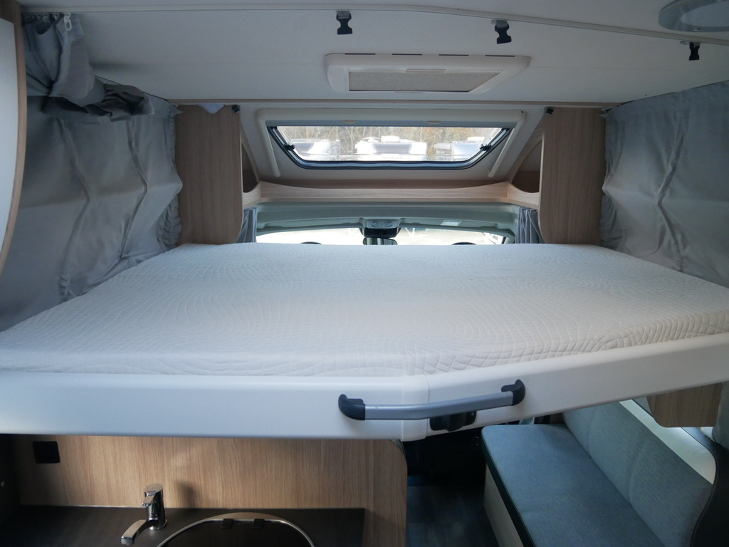 Maten: de camper heeft een stahoogte van 206 cm en 191 cm onder het hefbed, fransbed: 205 X 140 cm, hefbed: 140 X 195 cm.