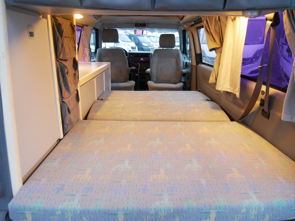 De buscamper is onder andere voorzien van 4 slaapplaatsen, slaaphefdak, motorairco, elektrische ramen voor, draaibare voorstoelen, stoelverwarming, cruise control, dieselkachel, compressor koelkast, radio/cd/mp-3 speler, bluetooth, 2 pits gastoestel, tafel en wasbak.