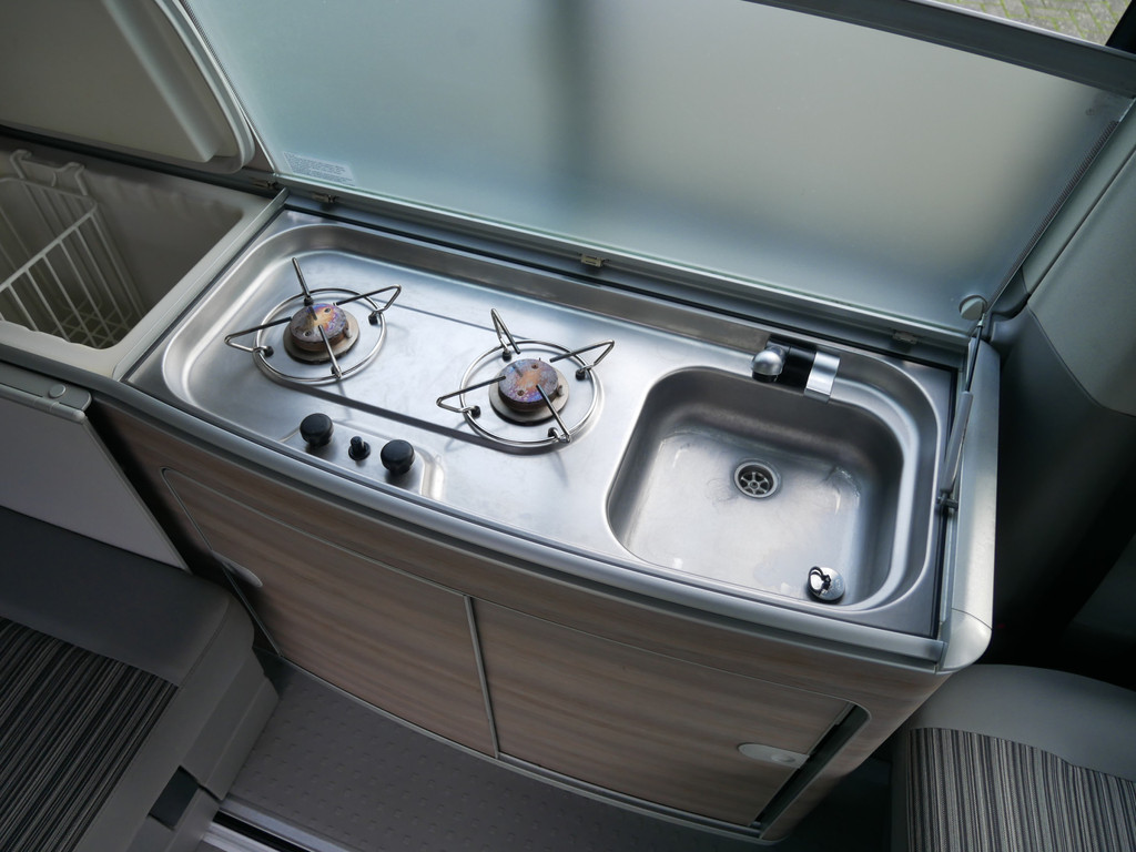 De buscamper is onder andere voorzien van 4 slaapplaatsen, 4 goedgekeurde zitplaatsen, slaaphefdak, automatische airco, draaibare voorstoelen, stoffen bekleding, stoelverwarming, elektrische ramen voor, elektrisch verstelbare spiegels, parkeersensoren achter, huishoud accu, 220 V aansluiting, 2 pits gastoestel, fietsenrek, luifel, wasbak, stand kachel op diesel en koelkast.