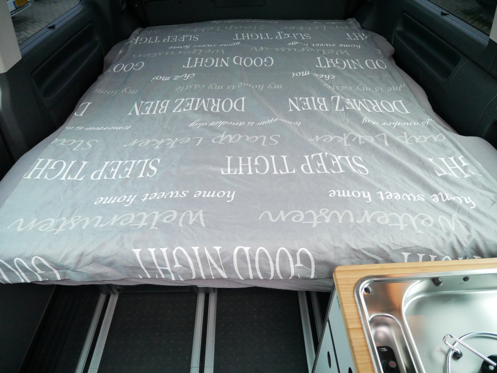 Bed maten: slaapbank: 150 X 195 cm en slaaphefdak: 115 X 200 cm.