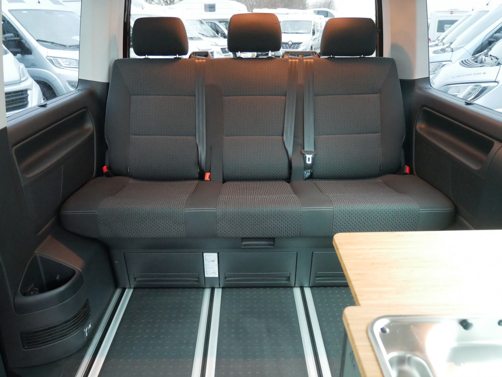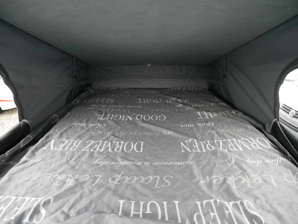 De buscamper is onder andere voorzien van 4 slaapplaatsen, Easy fit slaaphefdak van Reimo met het luxe bed (schotels), DSG Automaat, LED Koplampen / achterlichten, climatronic airco, stoffen bekleding, elektrische ramen voor, elektrisch verstelbare spiegels, parkeersensoren voor en achter, draaibare voorstoelen, bluetooth functie, navigatie, Apple Carplay / Android Auto, keukenblok, 1 pits gastoestel en wasbak.