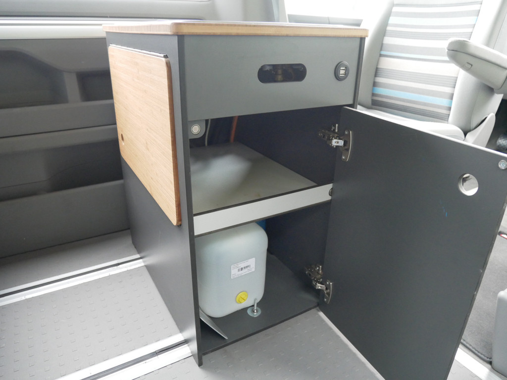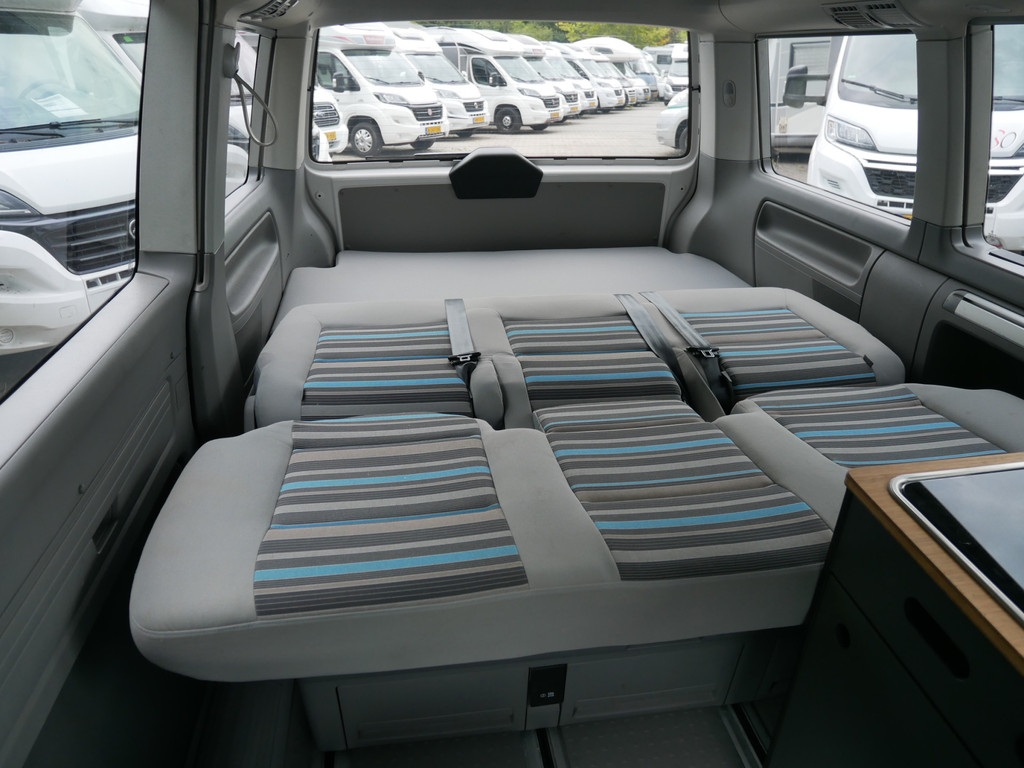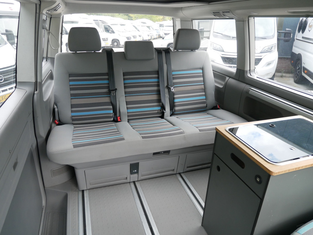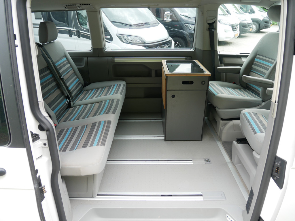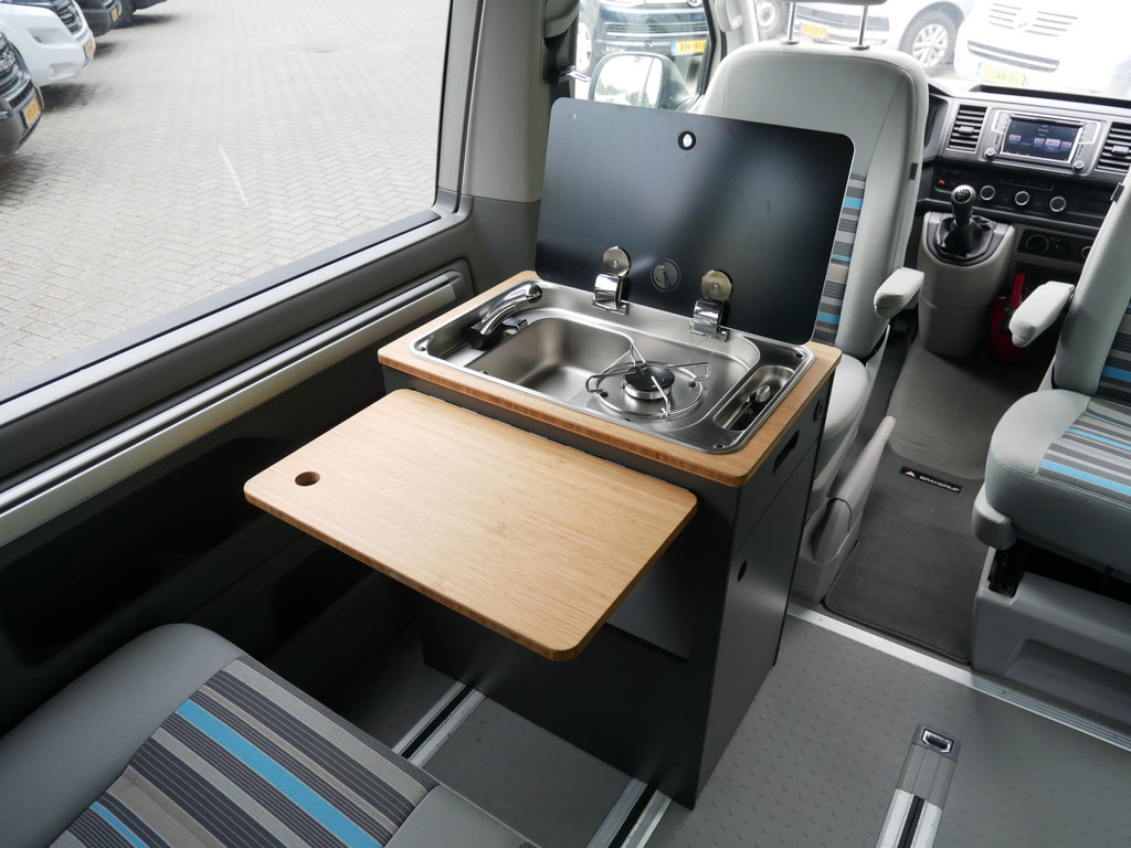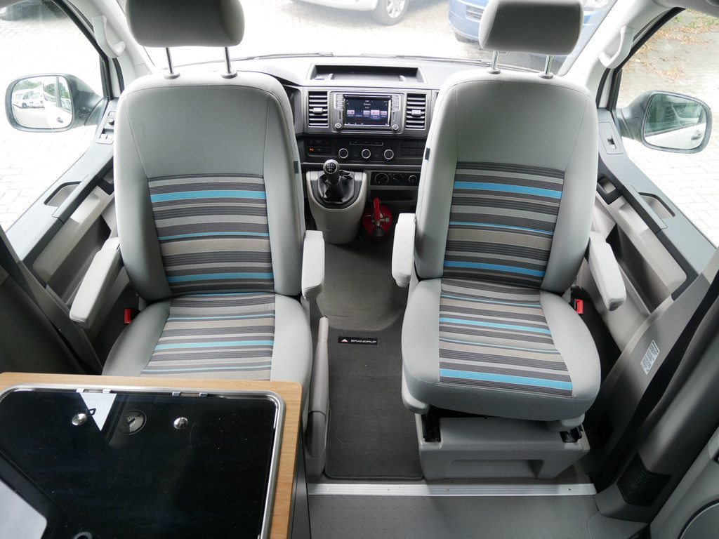 De buscamper is onder andere voorzien van 4 slaapplaatsen, elektrisch Volkswagen California dak, 5- bak, airco, stoffen Beach bekleding, elektrische ramen voor, elektrisch verstelbare spiegels, parkeersensoren voor en achter, draaibare voorstoelen, bluetooth functie, navigatie, keukenblok, 1 pits gastoestel en wasbak.