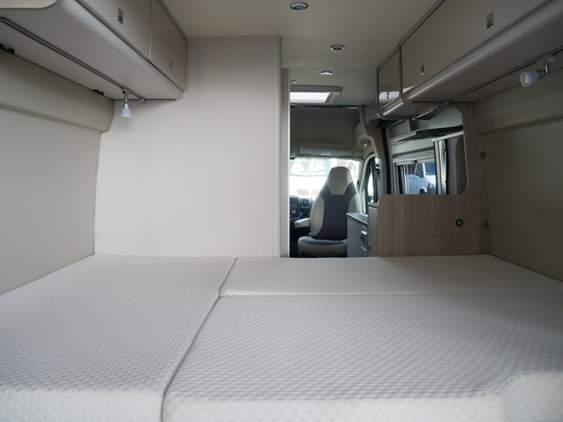 De camper is onder andere voorzien van een prachtige afwerking zoals half lederen bekleding, keuken met 2 pits kooktoestel, dwarsbed, cruise control, Truma kachel op gas, boiler op gas, XL compressor koelkast, modern en licht ogende tinten in het interieur, wasbak, airco, zeer veel opbergmogelijkheden door de vele bovenkasten, hordeur entree, radio/mp-3 speler, bluetooth, achteruitrijcamera, toiletruimte met doucheruimte, een ruime zit met tafel en verduistering rondom.