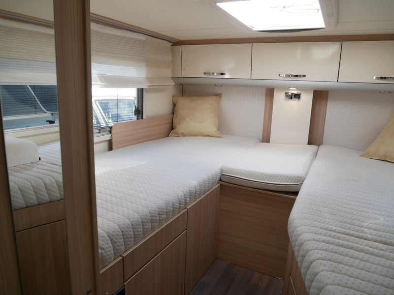 De camper is onder andere voorzien van een mooie en luxe afwerking met de speciale '30 Edition stoelen in creme half leder en moderne look in het interieur, ruime keuken met 3 pits kooktoestel, lengtebedden, elektrisch hefbed, wasbak, hordeur entree, brede deurentree, motorairco, zeer veel opbergmogelijkheden door de vele bovenkasten en de grote kast ruimtes, ruime toiletruimte, slimme douche ruimte, een ruime rondzit met grote verschuifbare tafel en een royale XXL garage met een grote deur rechts en links (105 X 80 cm) zodat fietsen in 1x geplaatst kunnen worden.