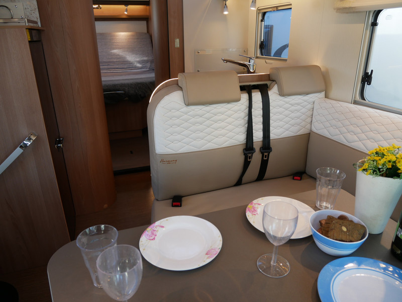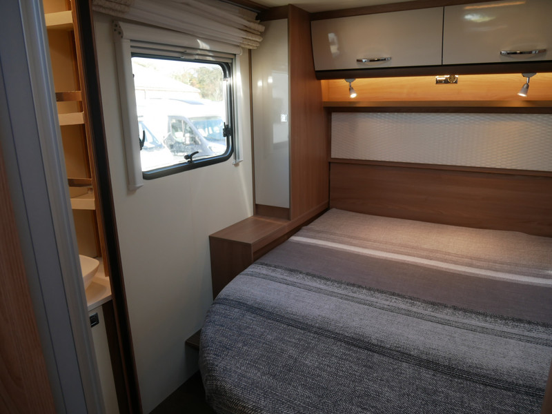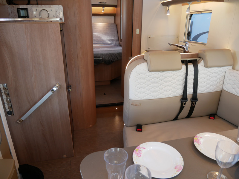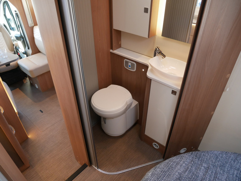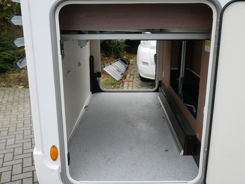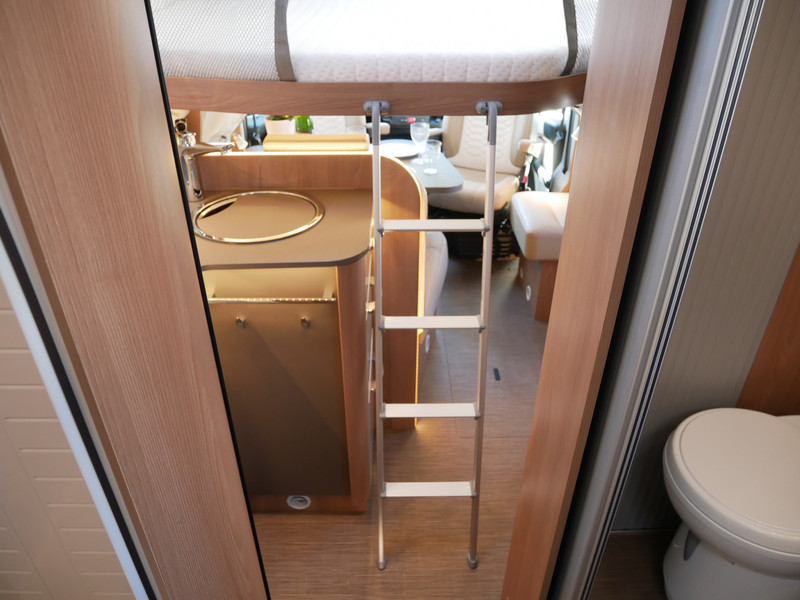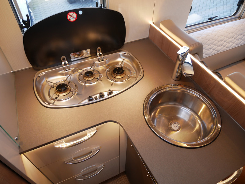 De camper is onder andere voorzien van een zeer luxe afwerking met mooie lichte half lederen bekleding, luifel, luxe ruime keuken met 3 pits kooktoestel, lichte houttinten in het interieur, queensbed (195 X 150 cm), hefbed (135 X 195 cm), ombouw rondzit tot 3e bed, wasbak, hordeur entree, extra brede deuringang, airco, zeer veel opbergmogelijkheden in de vele bovenkasten en de grote kast ruimtes, ruime toiletruimte samen met een douche ruimte, een ruime rondzit met grote tafel en een XXL garage met serviceluik aan de rechter en linker buitenzijde (83 X 110 Cm).