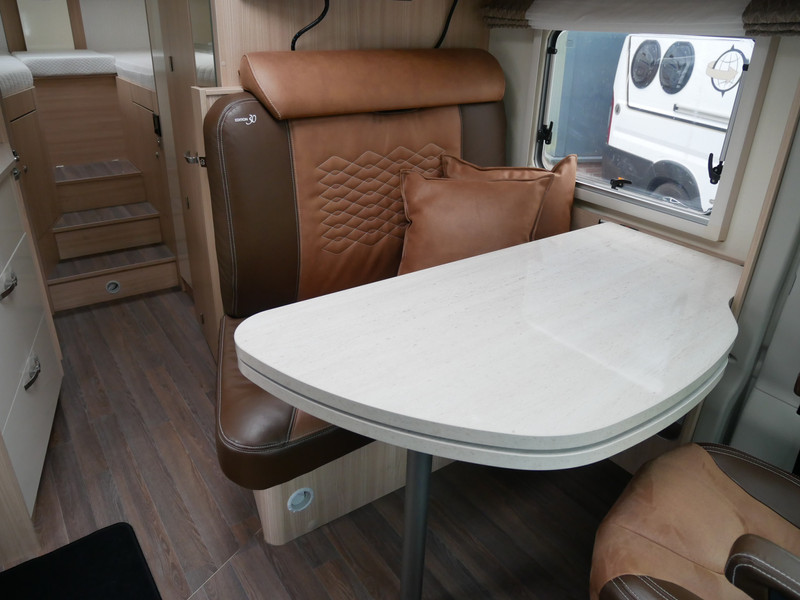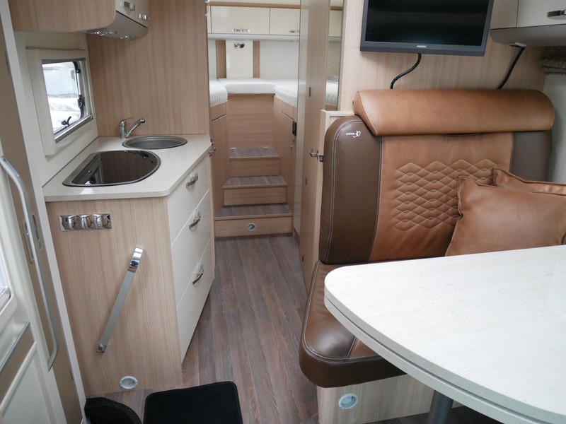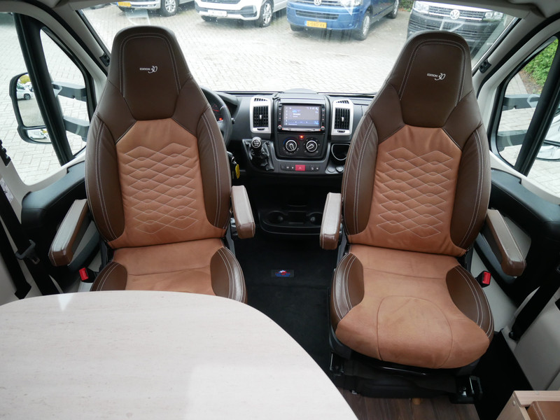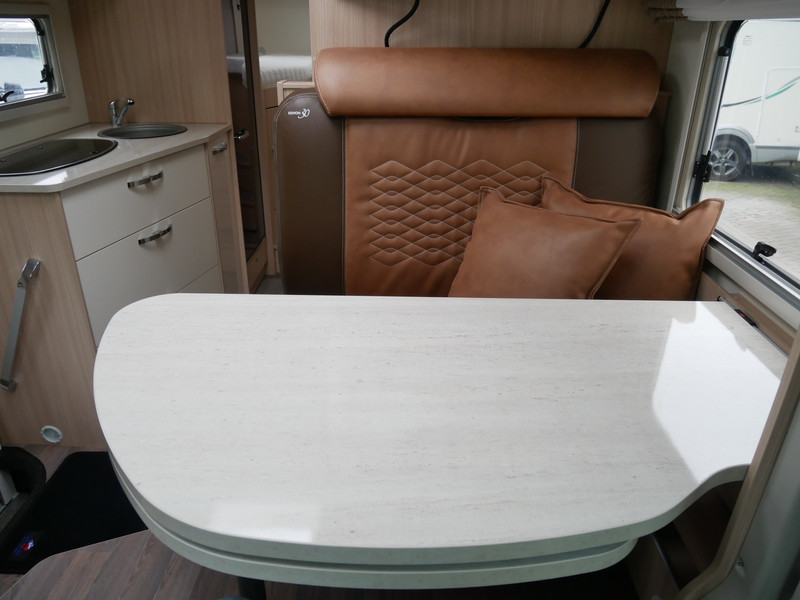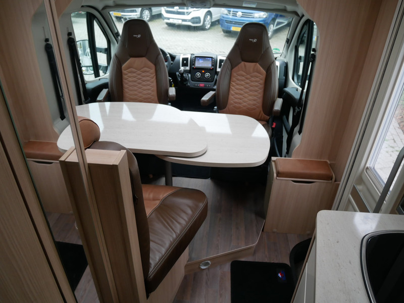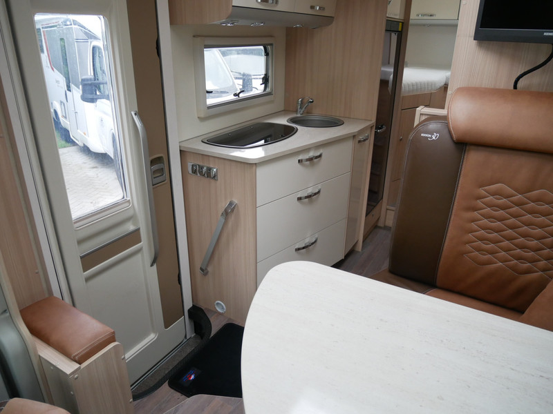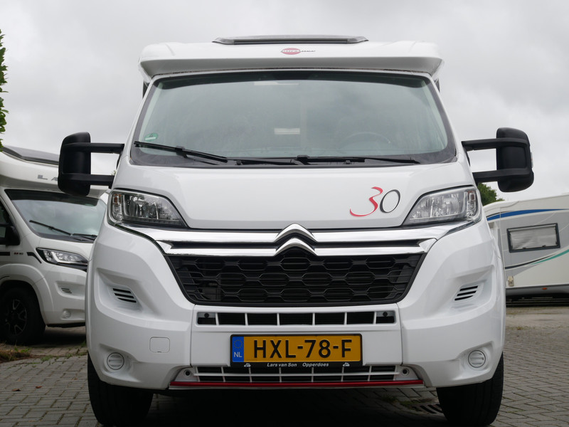 De camper is onder andere voorzien van het 30' Years edition pakket, hierin zijn de mooie houtkleuren te vinden in combinatie met de chique ogende half lederen bekleding, cassette luifel, Truma combiketel op gas, luxe ruime keuken met 2 pits kooktoestel, hordeur, centrale deurvergrendeling, wasbak, motorairco, zeer veel opbergmogelijkheden in de vele bovenkasten en de grote kast ruimtes, ruime toiletruimte met douche, XXL koelkast met vriesvak, een ruime rondzit met grote tafel en een XL garage onder de lengtebedden met links en rechts een garagedeur.