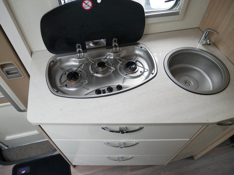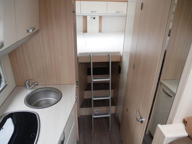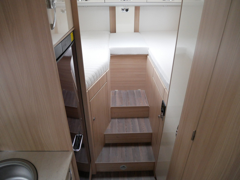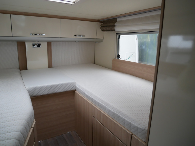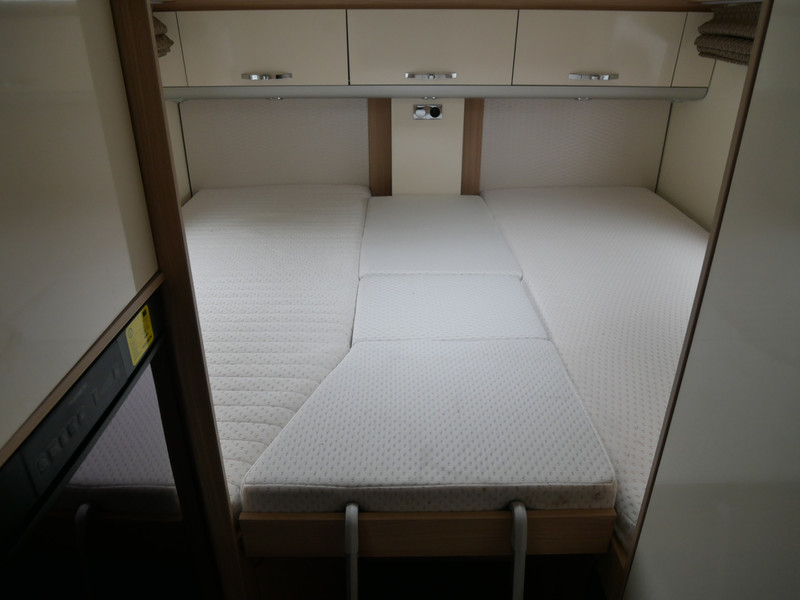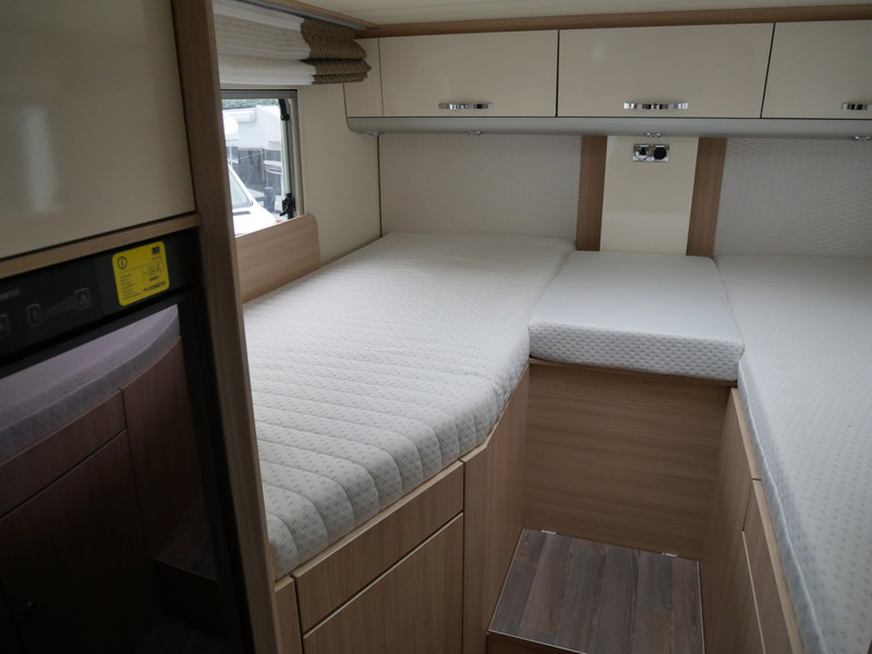 Maten: de camper heeft een stahoogte van 195 cm, lengtebedden: links: 192 X 80 cm, rechts: 198 x 80 cm en volle breedte: 200 cm.