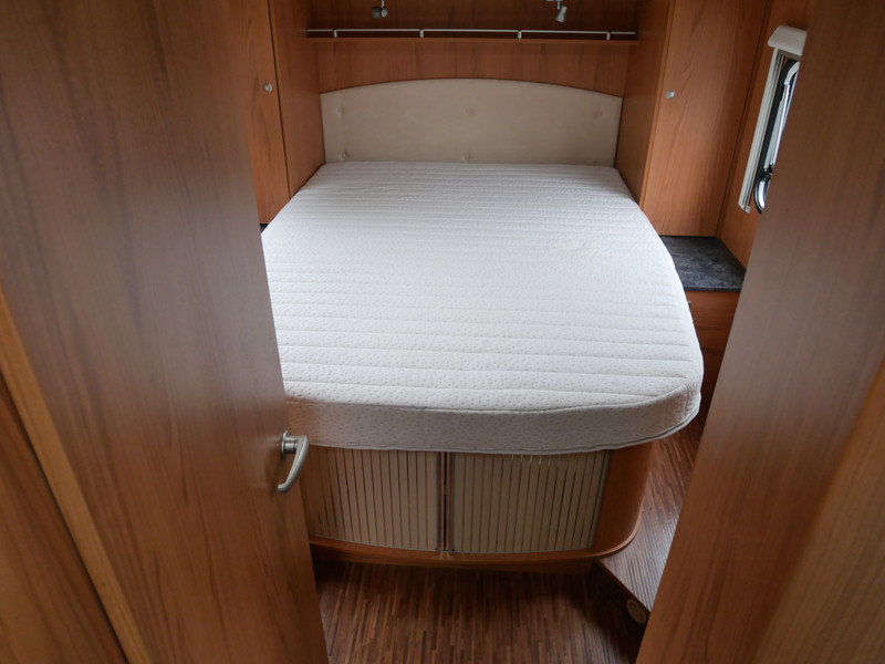 De camper is onder andere voorzien van luxe stoffen bekleding, mooie en lichte houtkleuren, ruime keuken met 3 pits kooktoestel, wasbak, motorairco, queensbed, dubbelglas ramen, zeer veel opbergmogelijkheden door de vele kasten en slimme opbergvakken, aparte douche, toiletruimte, een ruime rondzit met tafel en een garageluik rechts onder het queensbed.