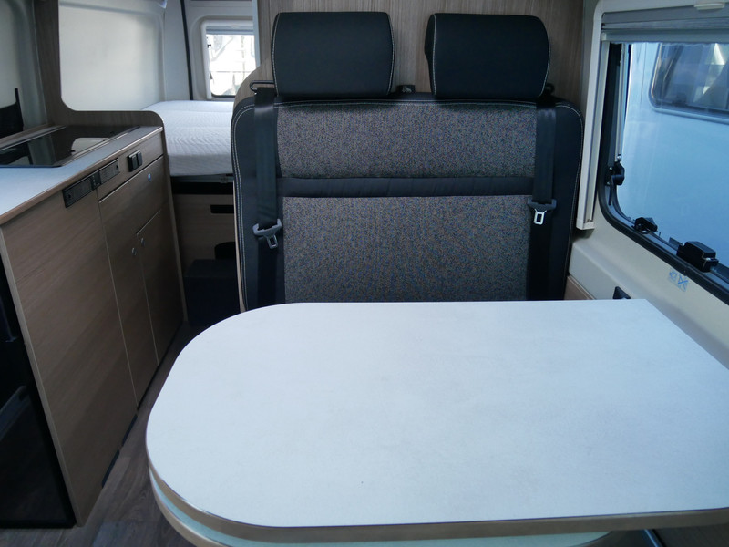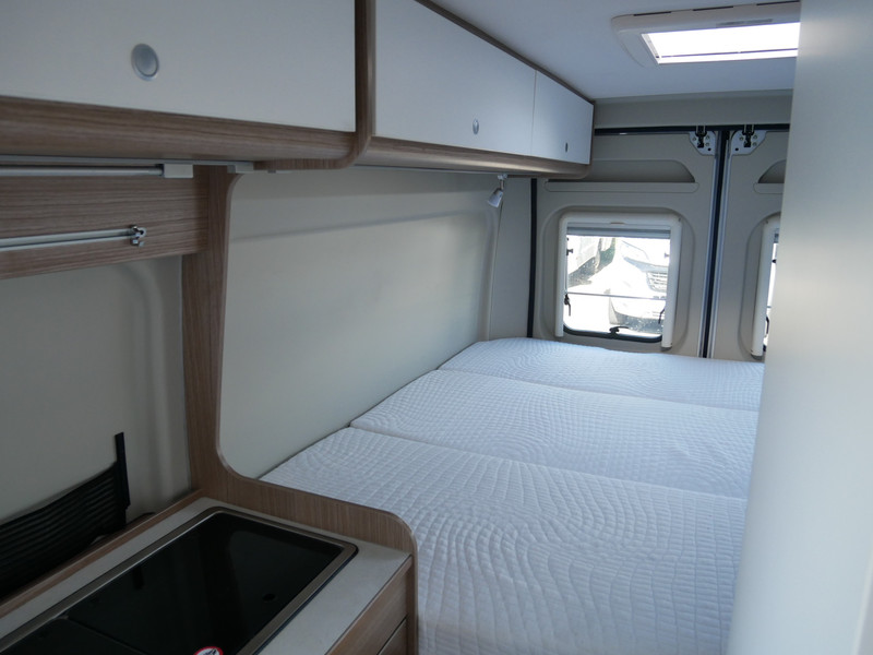 Maten: de camper heeft een stahoogte van 189 cm, lengtebedden links: 190 X 97 cm, rechts: 185 X 97 cm, volledige breedte: 195 cm.
