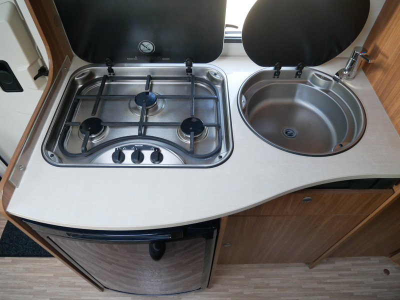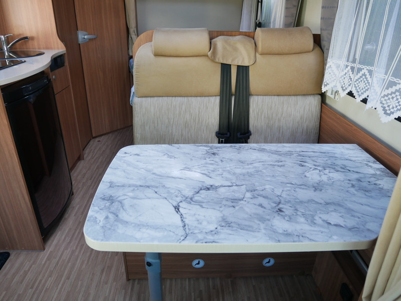 Maten: de camper heeft een stahoogte van 195 cm, fransbed: 200 X 135 cm.