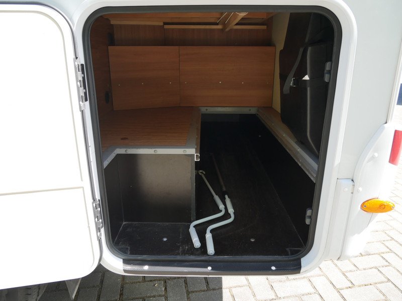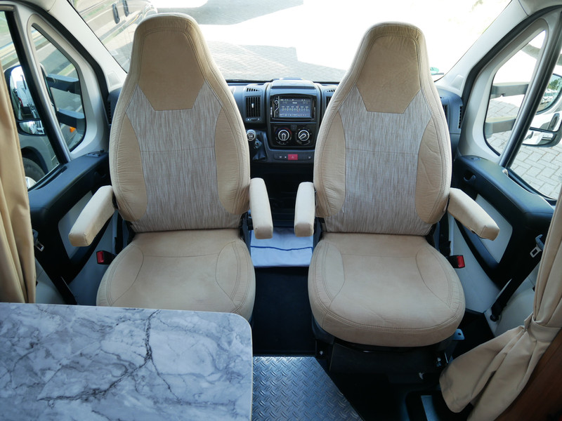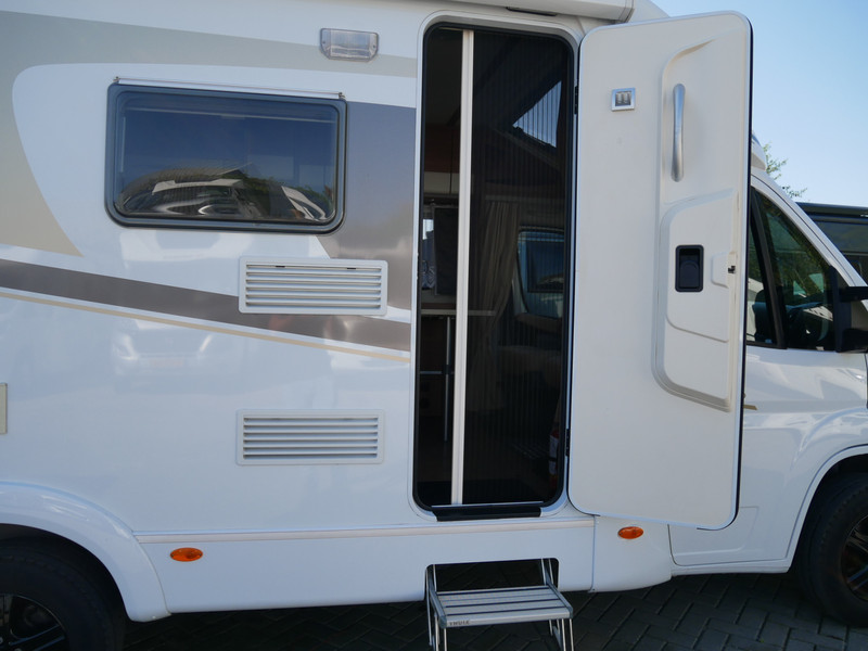 De camper is onder andere voorzien van een zeer mooie en luxe afwerking met stoffen stoelen, moderne houtlook in het interieur, cassette luifel, Truma combiketel op gas, luxe ruime keuken met 3 pits kooktoestel, hordeur, centrale deurvergrendeling met afstandsbediening, elektrische opstap, wasbak, motorairco, zeer veel opbergmogelijkheden in de vele bovenkasten en de grote kast ruimtes, ruime toiletruimte met douche, koelkast met vriesvak, een treinzit met grote tafel, zonnepaneel en een garage onder het fransbed met een garagedeur.