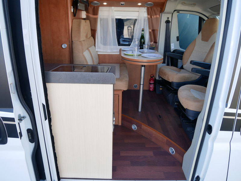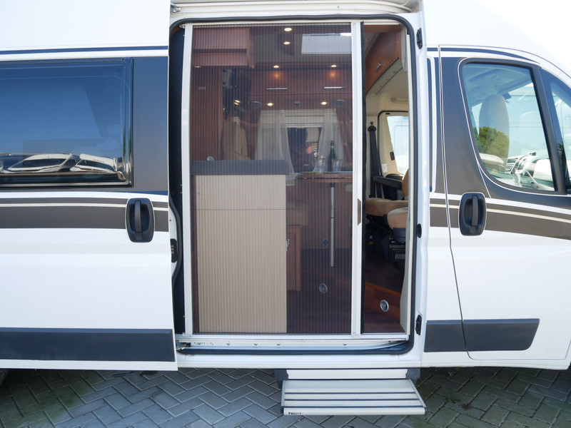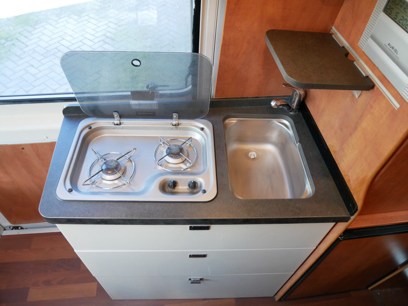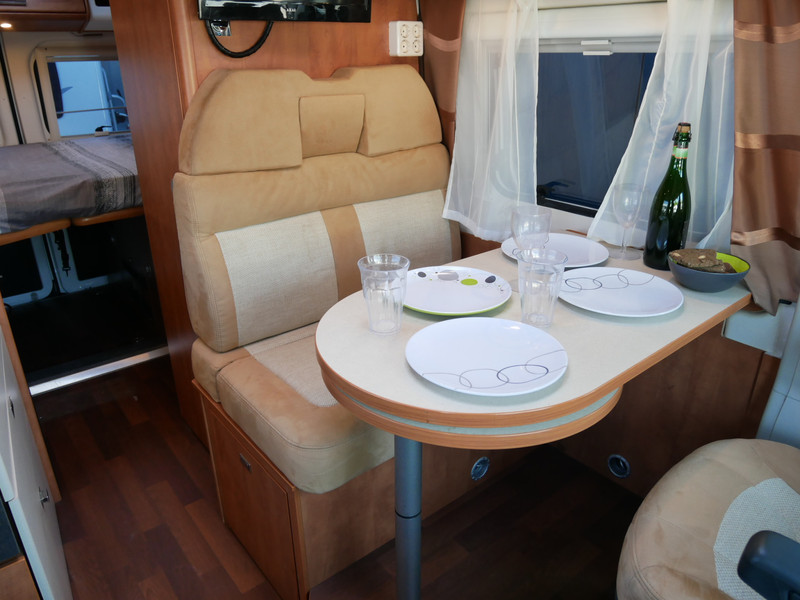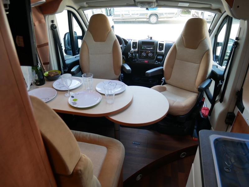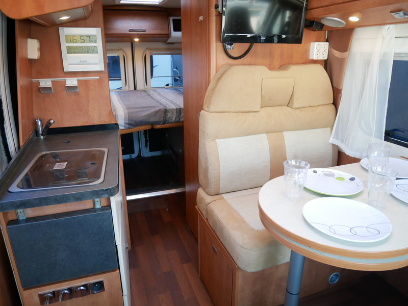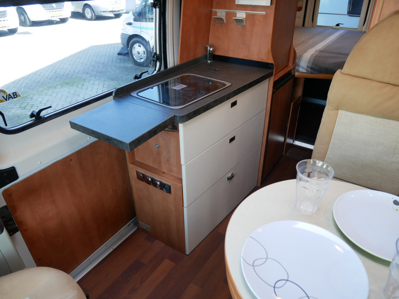 Verder is de camper onder andere voorzien van een zeer mooie en degelijke afwerking met stoffen bekleding, een goede isolatie die rijgeluiden minimaliseren, keuken met 2 pits kooktoestel, dwarsbed, cruise control, Truma combiboiler, verwarming op gas, warm water op gas, mooie en luxe houttinten in het interieur, wasbak, motorairco, luifel, kastjes die bevestigt zijn met dubbele verbindingstechnieken voor een optimale stevigheid en een lange levensduur, zeer veel opbergmogelijkheden door de zeer vele bovenkasten, toiletruimte met douche, slim wegschuifbare wc, radio/cd/mp-3 speler en een ruime zit met tafel.