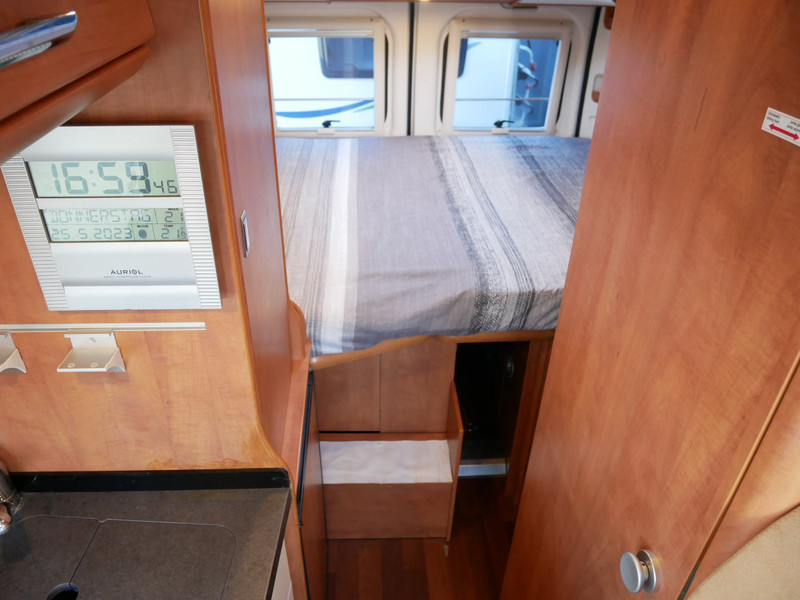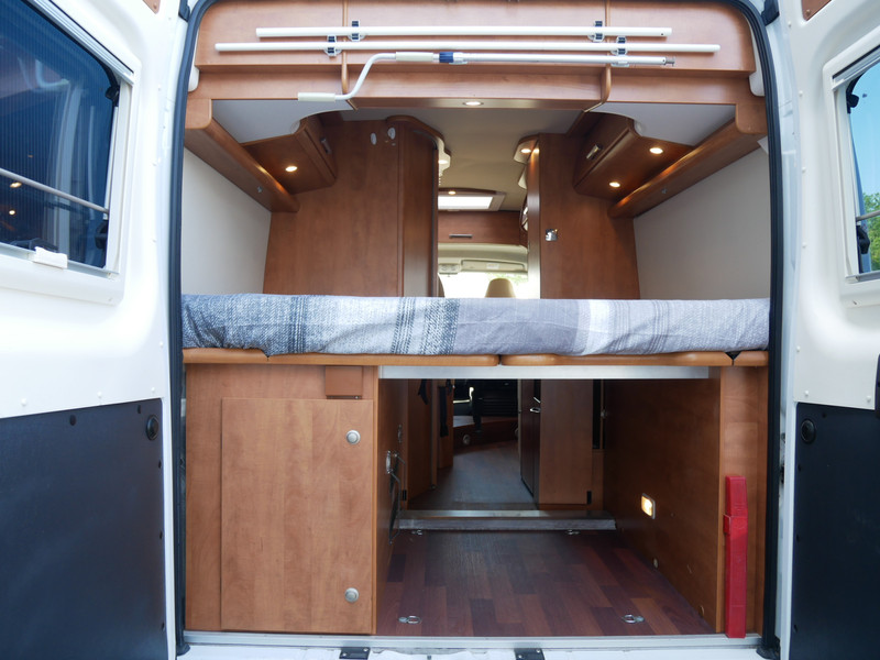 Maten: De camper heeft een stahoogte van 188 cm en dwarsbed 150 x 195 cm