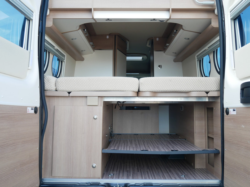 De camper is onder andere voorzien van een nette afwerking met half lederen bekleding, keuken met 2 pits kooktoestel, lengtebedden, cruise control, Truma combiboiler, verwarming op gas, warm water op gas, houttinten in het interieur, wasbak, motorairco, hordeur entree, kastjes die bevestigt zijn met dubbele verbindingstechnieken voor een optimale stevigheid en een lange levensduur, zeer veel opbergmogelijkheden door de vele bovenkasten, toiletruimte met douche, slim wegschuifbare wc, radio/mp-3 speler, bluetooth, achterruitrijcamera en een ruime zit met tafel.
