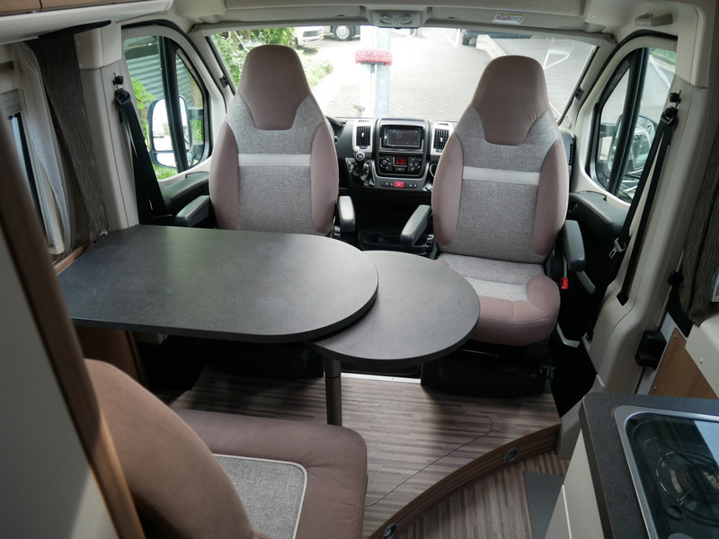 De camper is onder andere voorzien van een nette afwerking met stoffen bekleding, een goede isolatie die rijgeluiden minimaliseren, keuken met 2 pits kooktoestel, lengtebedden, cruise control, Truma combiboiler, verwarming op gas, warm water op gas, mooie en luxe houttinten in het interieur, wasbak, motorairco, hordeur entree, kastjes die bevestigt zijn met dubbele verbindingstechnieken voor een optimale stevigheid en een lange levensduur, zeer veel opbergmogelijkheden door de vele bovenkasten, toiletruimte met douche, slim wegschuifbare wc, radio/cd/mp-3 speler, bluetooth, achterruitrijcamera en een ruime zit met tafel.