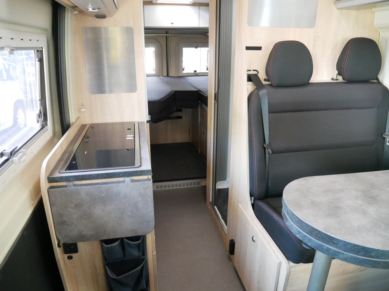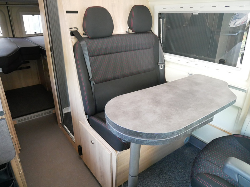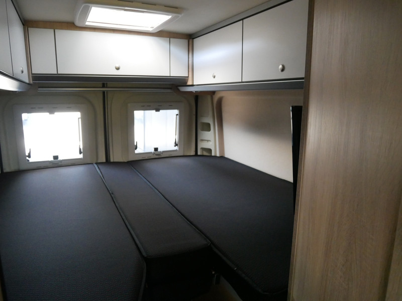 De camper is onder andere voorzien van een leuke afwerking met stoffen bekleding, keuken met 2 pits kooktoestel, truma kachel op diesel, boiler op diesel, lichte houttinten in het interieur, bluetooth, wasbak, motorairco, zeer veel opbergmogelijkheden door de vele bovenkasten, toiletruimte met douche, radio/mp-3 speler, bluetooth, achteruitrijcamera, een zit met tafel en lengtebedden.