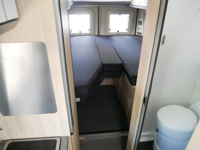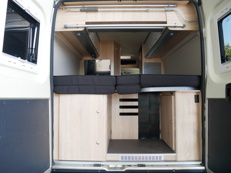 Maten: De camper heeft een stahoogte van 190 cm en lengtebedden: links 208 X 85 cm, rechts 191 X 85 cm, volle breedte 193 cm.