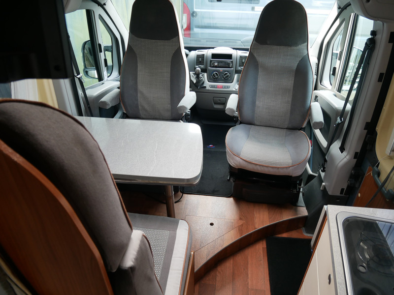 De camper is onder andere voorzien van een nette afwerking met stoffen bekleding en modern en luxe ogende houttinten in het interieur, keuken met 2 pits kooktoestel, lengtebedden, cruise control, Truma kachel op gas, boiler op gas, koelkast met een apart vriesvak, wasbak, motorairco, zeer veel opbergmogelijkheden door de vele kasten, toiletruimte en doucheruimte met carrousel, een ruime zit met tafel en verduistering rondom.
