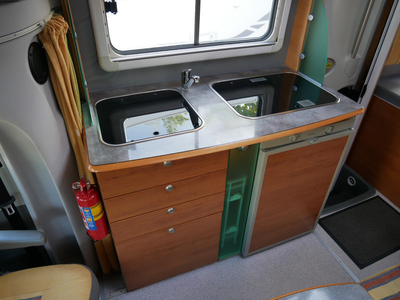 Maten: De camper heeft een stahoogte van 195 cm, fransbed: 140 x 195 cm.