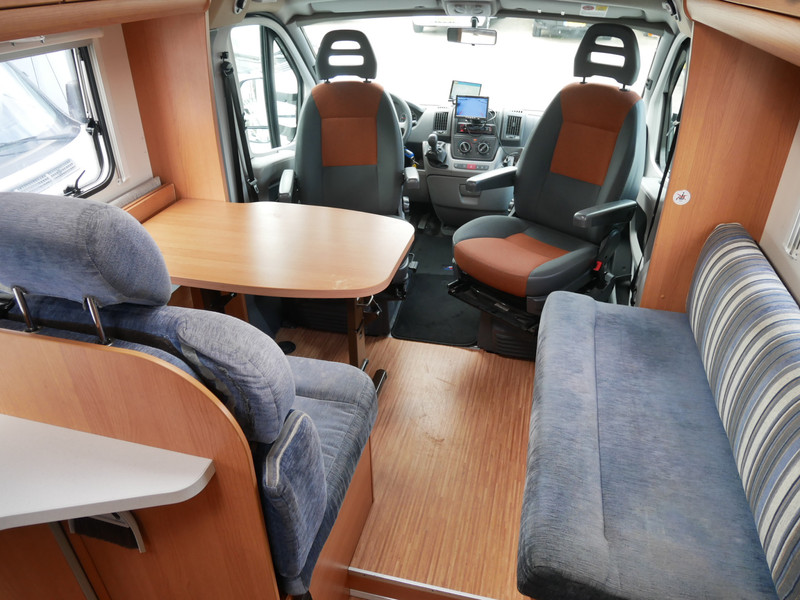 De camper is onder andere voorzien van stoffen bekleding, radio/mp-3 speler, ruime keuken met 3 pits kooktoestel, wasbak, mooie en luxe houttinten in het interieur, fransbed, motorairco, zeer veel opbergmogelijkheden door de vele en grote kast ruimtes, aparte toiletruimte met daarachter douche ruimte, een fijne ruime rondzit met tafel en een garage met serviceluik aan de rechter en linker buitenzijde.