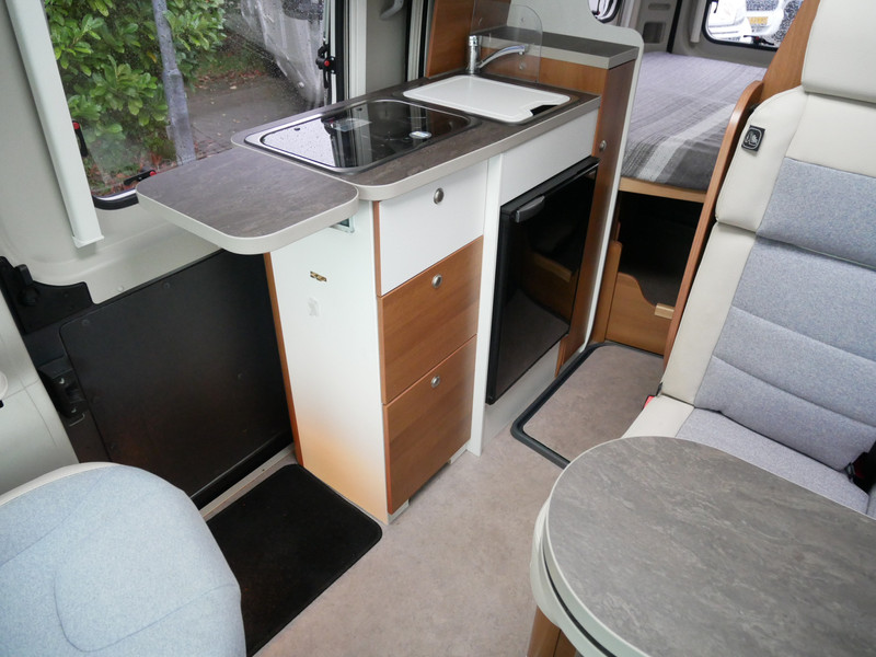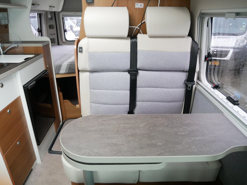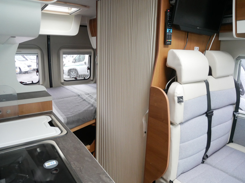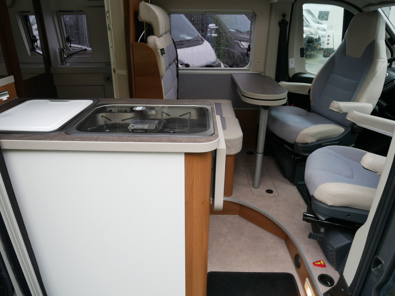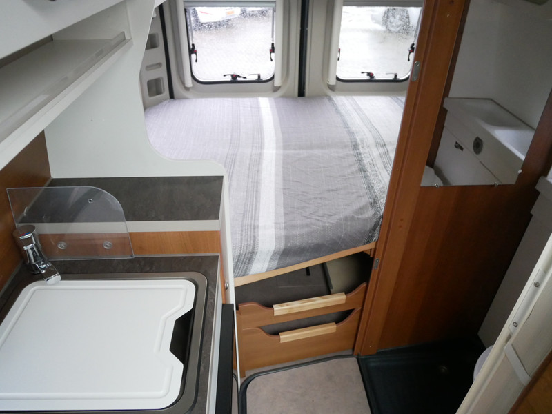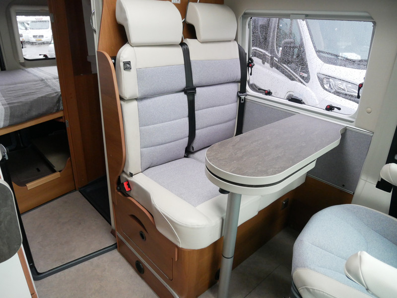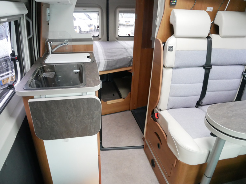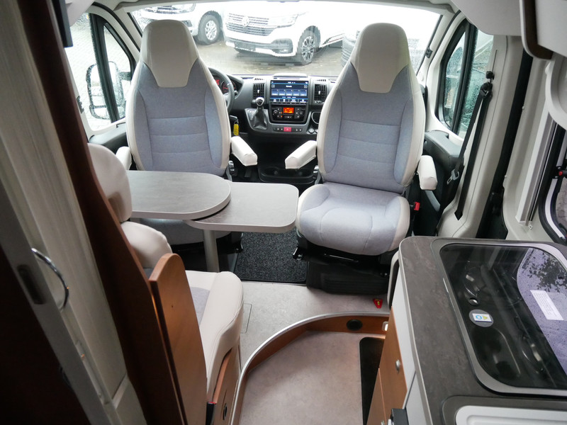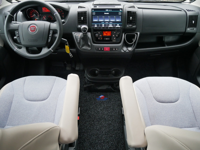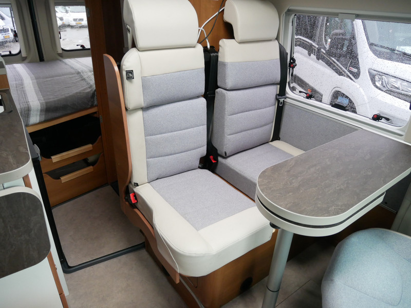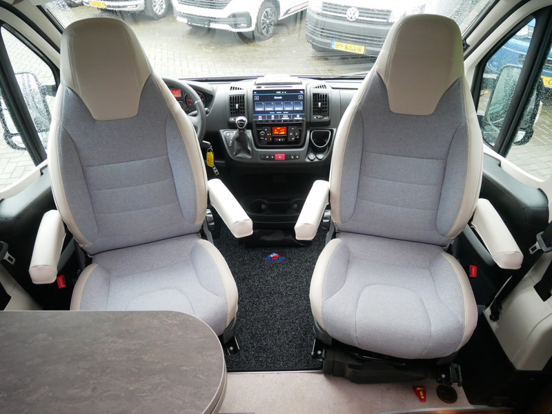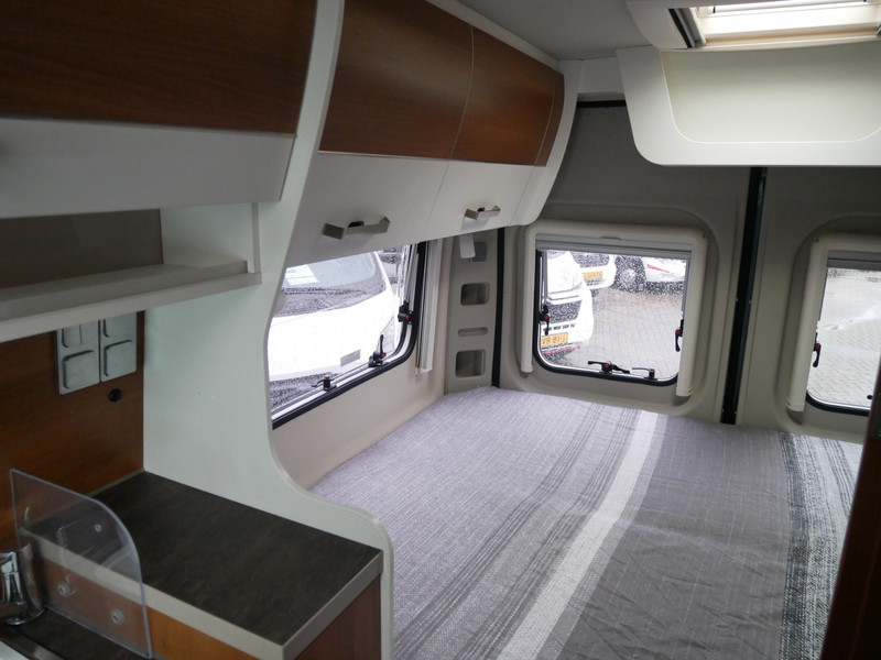 De camper is onder andere voorzien van 9-traps automaat, half lederen bekleding, keuken met 2 pits kooktoestel, dwarsbed, cruise control, Truma kachel en boiler op diesel, compressor koelkast, luxe ogende houttinten in het interieur, wasbak, motorairco, achterruitrijcamera, zeer veel opbergmogelijkheden in de vele bovenkasten, toiletruimte met douchecabine, een ruime zit met mooie tafel, verduistering rondom en een radio/mp-3 speler!
