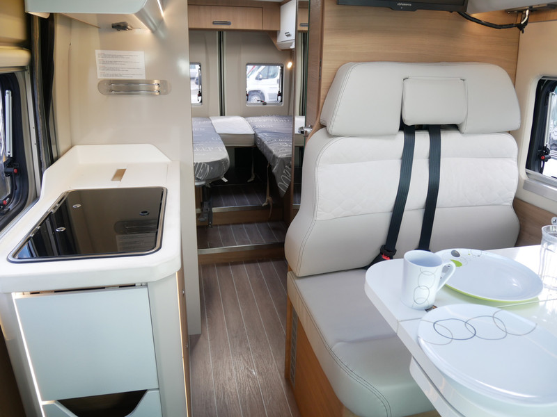 De Prestige uitvoering is rijk uitgerust met onder andere keuken met 2 pits kooktoestel, wasbak, koelkast, hordeur entree, lengtebedden, motorairco, Truma boiler en kachel op diesel, cruise control, zeer veel opbergmogelijkheden in de vele kasten, badkamer met douche en toilet, bluetooth, mooie lichte accenten, achteruitrijcamera, zonnepaneel en cassetteluifel.