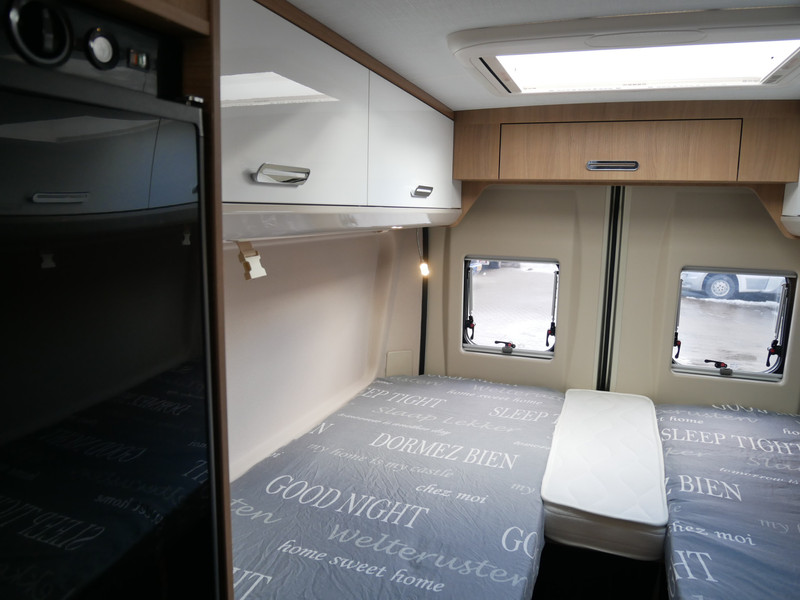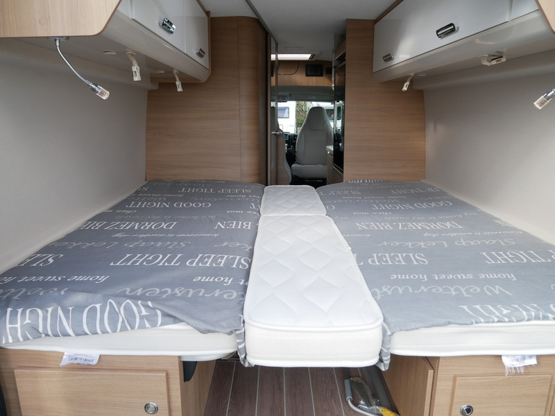 Maten: de camper heeft een stahoogte van 188 cm en maten van de lengtebedden: links: 195 x 80 cm, rechts: 190 x 80 cm en volle breedte: 195 cm.