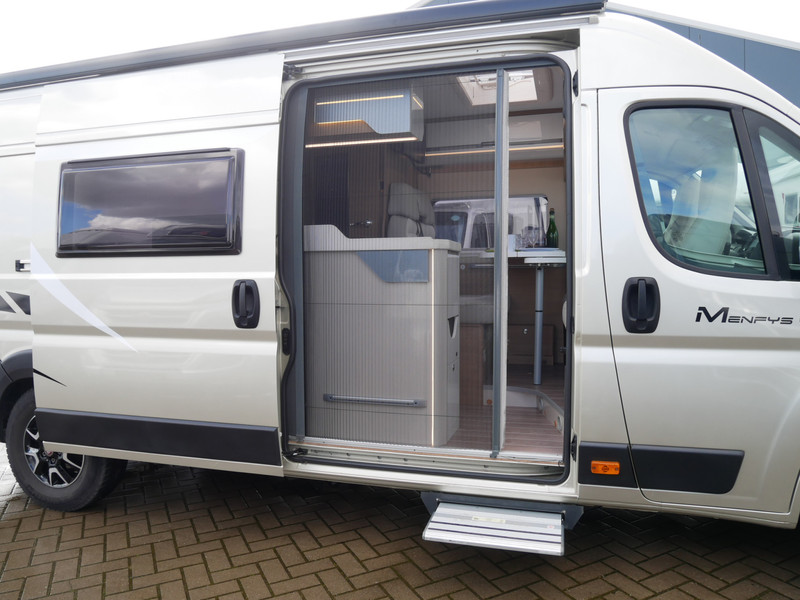 De Prestige uitvoering is rijk uitgerust met onder andere keuken met 2 pits kooktoestel, wasbak, koelkast, hordeur entree, lengtebedden, motorairco, Truma boiler en kachel op diesel, cruise control, zeer veel opbergmogelijkheden in de vele kasten, badkamer met douche en toilet, bluetooth, mooie lichte accenten, achteruitrijcamera, zonnepaneel, Memo fietsenrek compleet wegdraaibaar en een cassetteluifel.