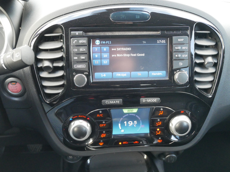 De Nissan Juke is voorzien van de fijne 1.2 benzine motor, cruise control, elektronisch bedienbare airco, stoffen bekleding, elektrische ramen voor en achter, licht metalen velgen, elektrisch verstelbare spiegels, in hoogte verstelbare bestuurderstoel, armsteun voor, bluetooth functie en radio/cd/mp-3 speler.