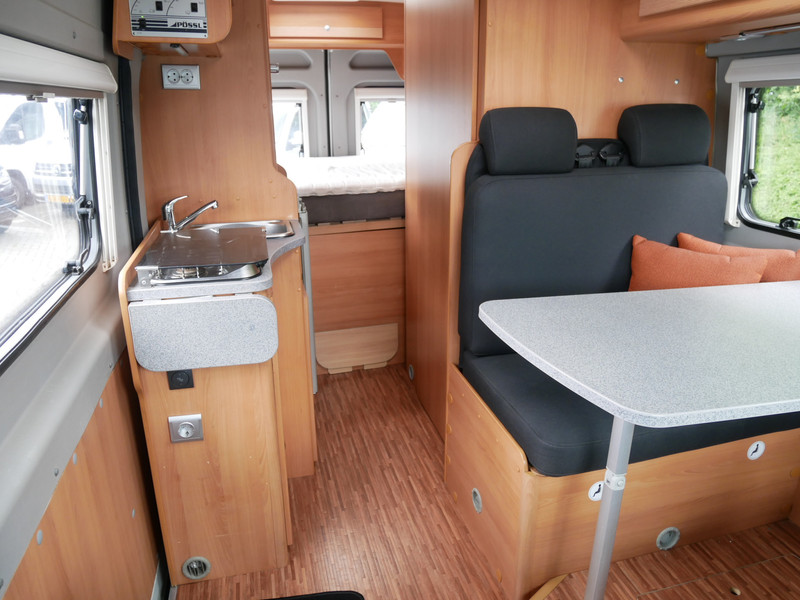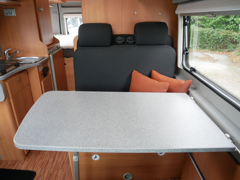 De camper is onder andere voorzien van een nette afwerking met stoffen bekleding, keuken met 2 pits kooktoestel, dwarsbed, cruise control, truma combiketel op gas, koelkast met apart vriesvakje, donkere houttinten in het interieur, wasbak, motorairco, zeer veel opbergmogelijkheden door de vele kasten, toiletruimte met schuifdeur, een ruime zit met tafel en verduistering rondom.