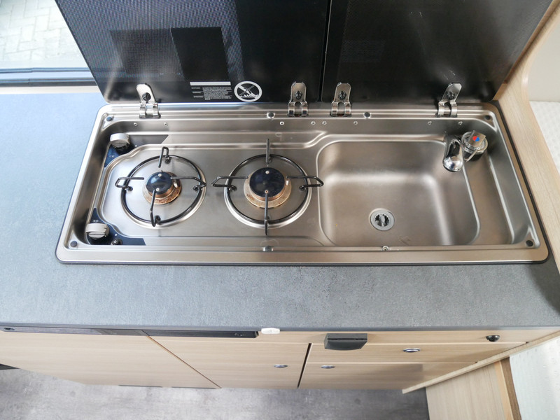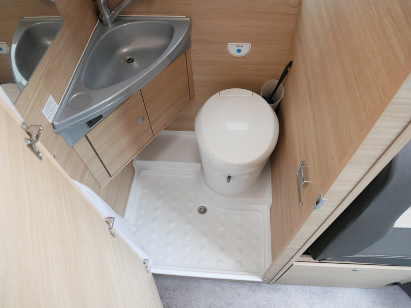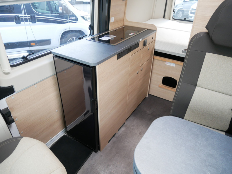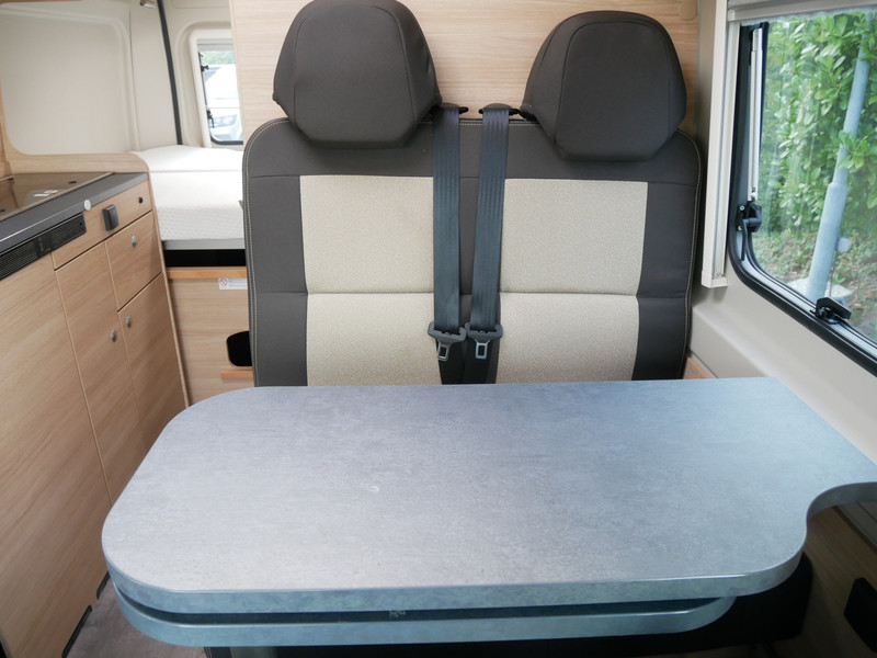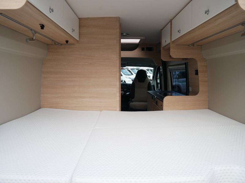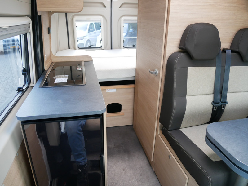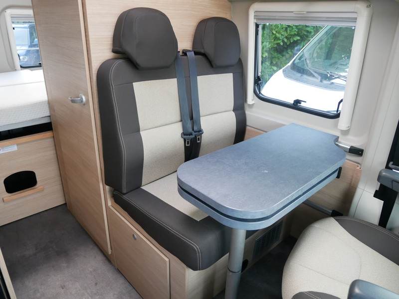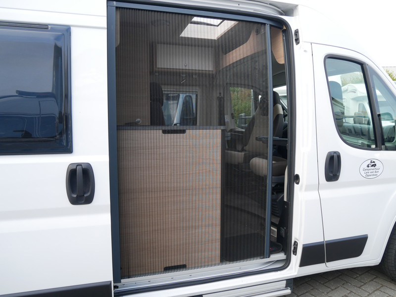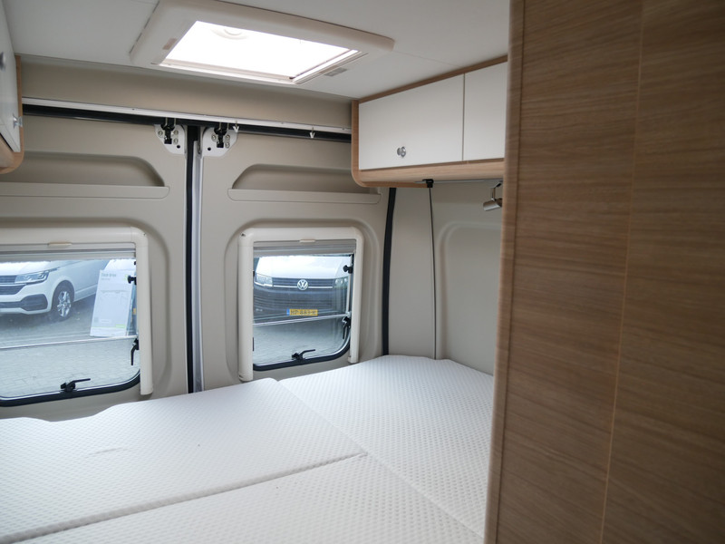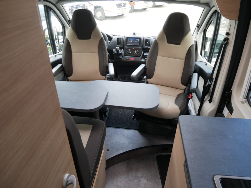 De camper is onder andere voorzien van stoffen bekleding, keuken met 2 pits kooktoestel, dwarsbed, cruise control, Truma kachel gas, boiler op gas, compressor koelkast, modern en licht ogende houttinten in het interieur, wasbak, motorairco, zeer veel opbergmogelijkheden in de vele kasten, toiletruimte met doucheruimte, een treinzit met tafel, bluetooth radio, verduistering in het campergedeelte en autogedeelte.