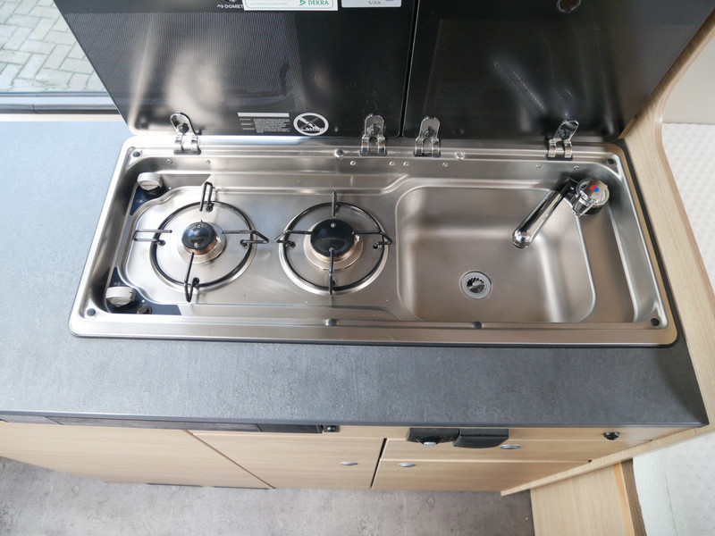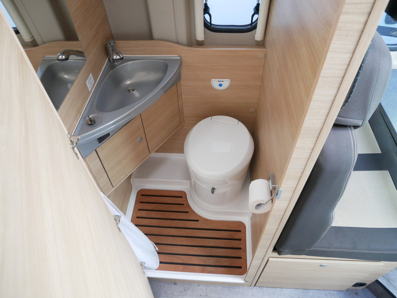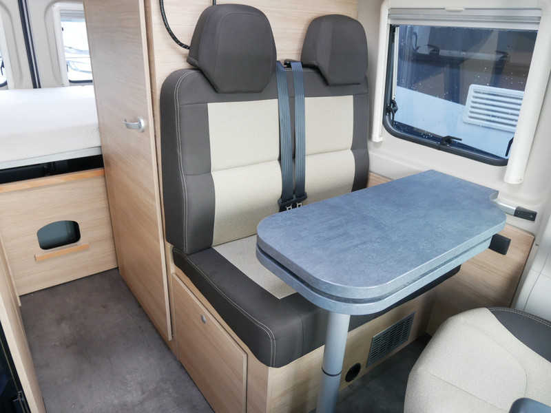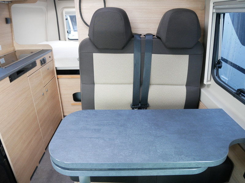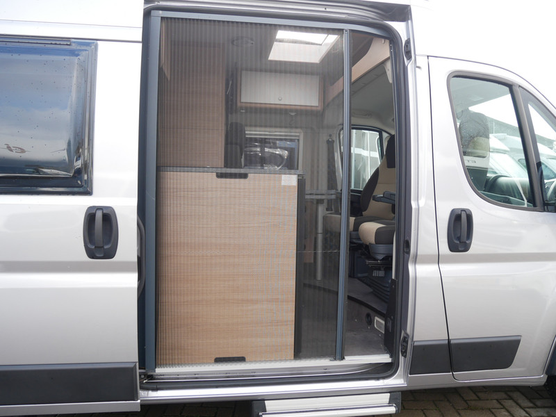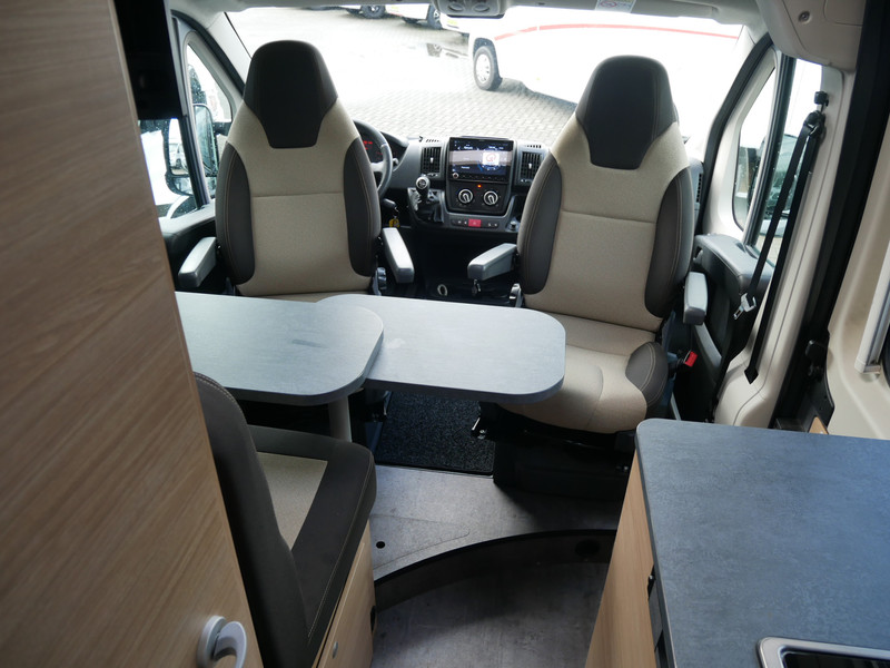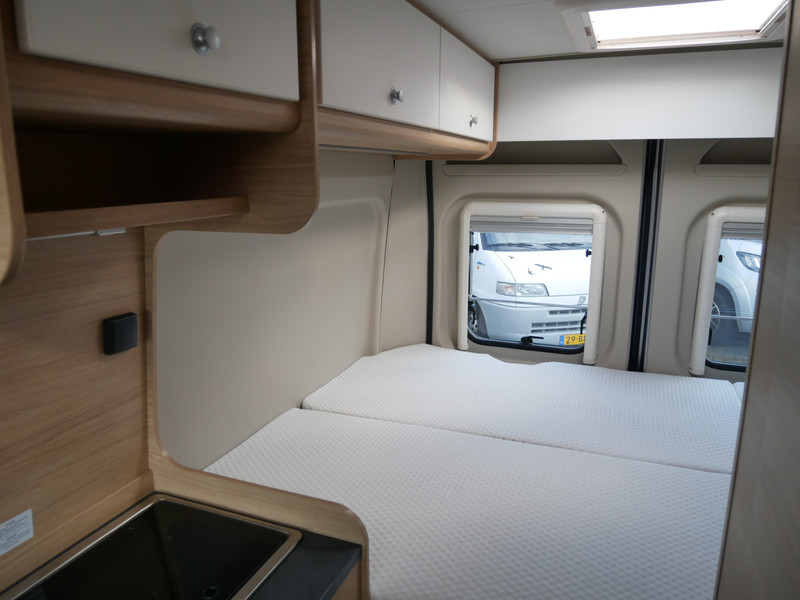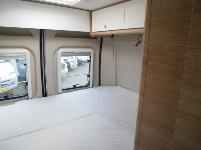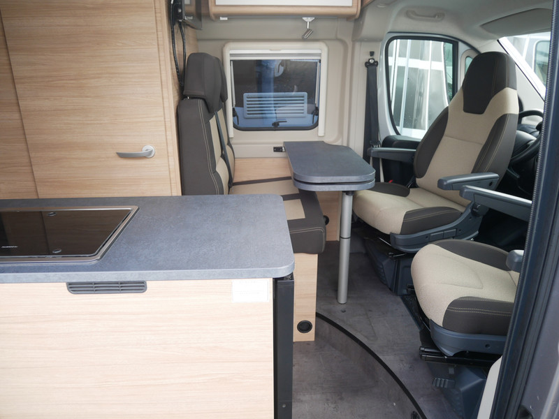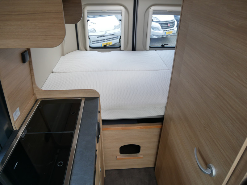 De camper is onder andere voorzien van stoffen bekleding, keuken met 2 pits kooktoestel, dwarsbed, cruise control, Truma kachel gas, boiler op gas, compressor koelkast, modern en licht ogende houttinten in het interieur, wasbak, motorairco, zeer veel opbergmogelijkheden in de vele kasten, toiletruimte met doucheruimte, een treinzit met tafel, bluetooth radio, verduistering in het campergedeelte.