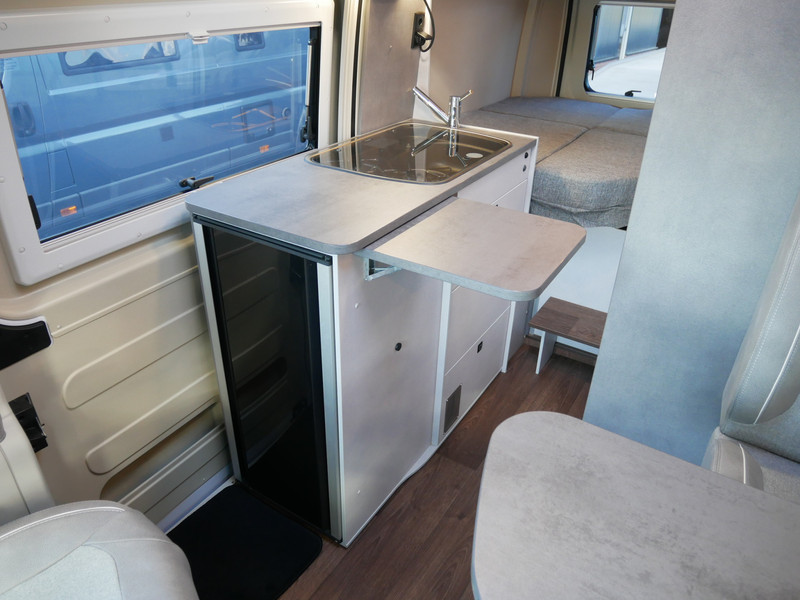 De camper is onder andere voorzien van een prachtige afwerking zoals: mooie bekleding, keuken met 2 pits kooktoestel, dwarsbed met fijn en dik matras, cruise control, truma kachel, boiler, compressor koelkast, zonnepaneel, wasbak, motorairco, luifel, zeer veel opbergmogelijkheden door de vele bovenkasten, verduistering rondom en een Van Swing!