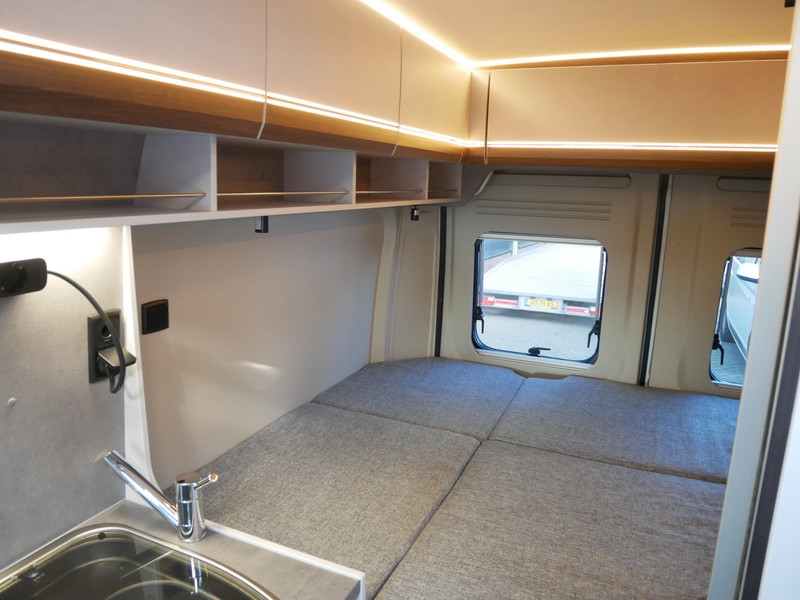 De camper heeft een stahoogte van 190 Cm en een dwarsbed 140/120 X 195 cm.