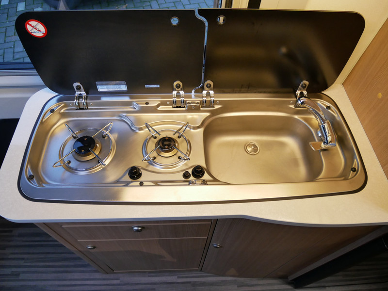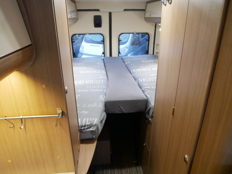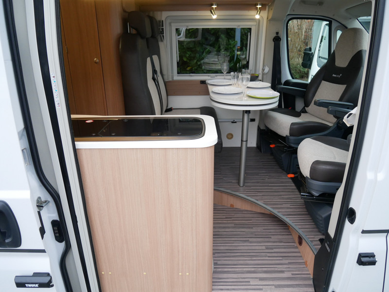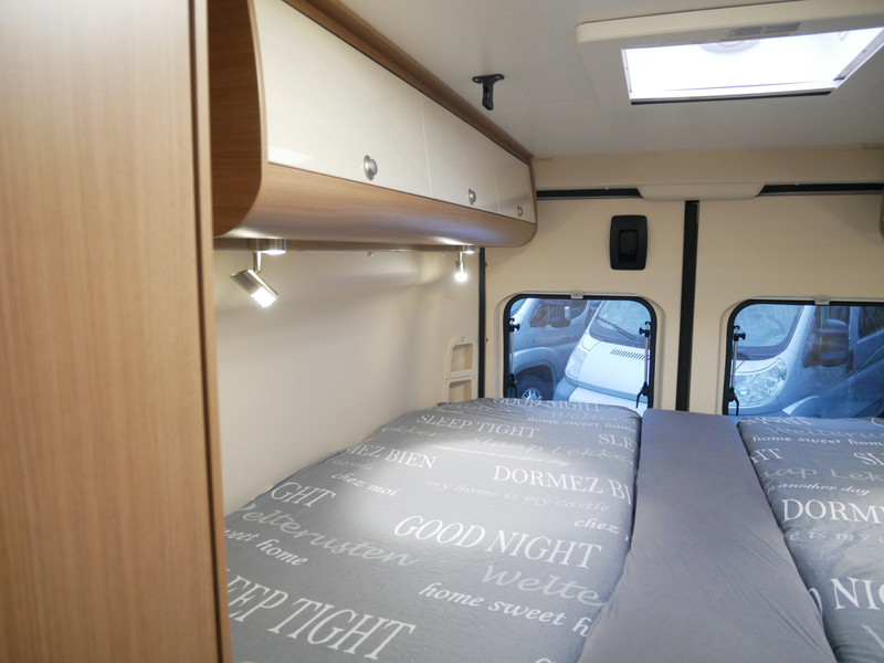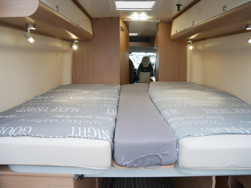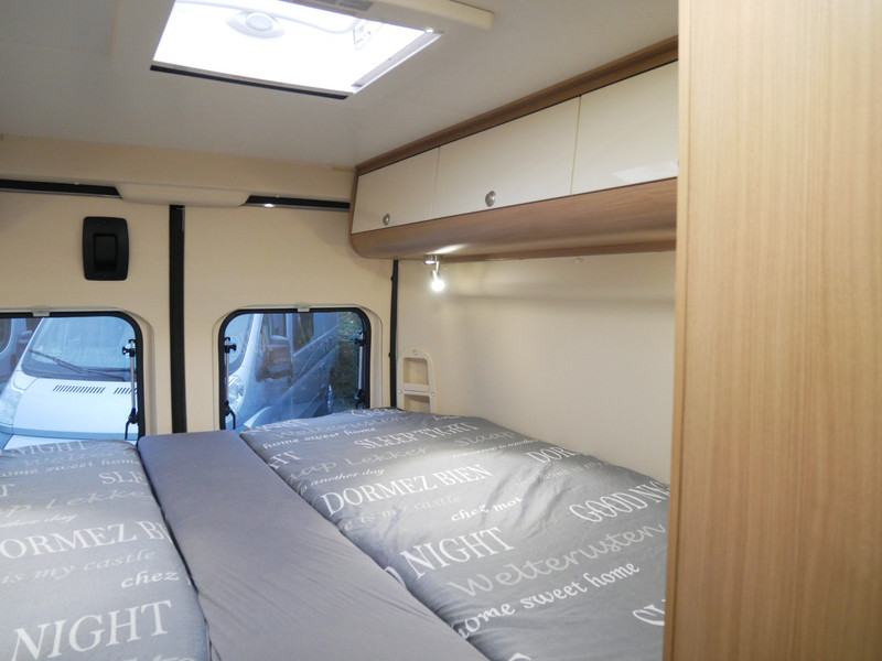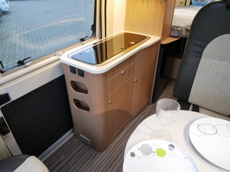 De camper is onder andere voorzien van een nette afwerking met stoffen bekleding en modern ogende houttinten in het interieur, keuken met 2 pits kooktoestel, lengtebedden, cruise control, truma kachel op gas, boiler op gas, achteruitrijcamera, zonnepaneel, wasbak, motorairco, radio/cd/mp-3 speler, bluetooth, zeer veel opbergmogelijkheden door de vele bovenkasten, toiletruimte met douche, een ruime zit met tafel en een entree hordeur!