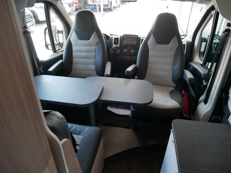 Verder is de camper van nog een aantal extra's voorzien zoals: fietsenrek, zwarte chassis kleur, keuken met 2 pits kooktoestel, dwarsbed, cruise control, Truma kachel op gas, boiler op gas, compressor koelkast, motorairco, radio/mp-3 speler, bluetooth, zeer veel opbergmogelijkheden door de vele bovenkasten, verduistering in het camper gedeelte en hordeur entree.
