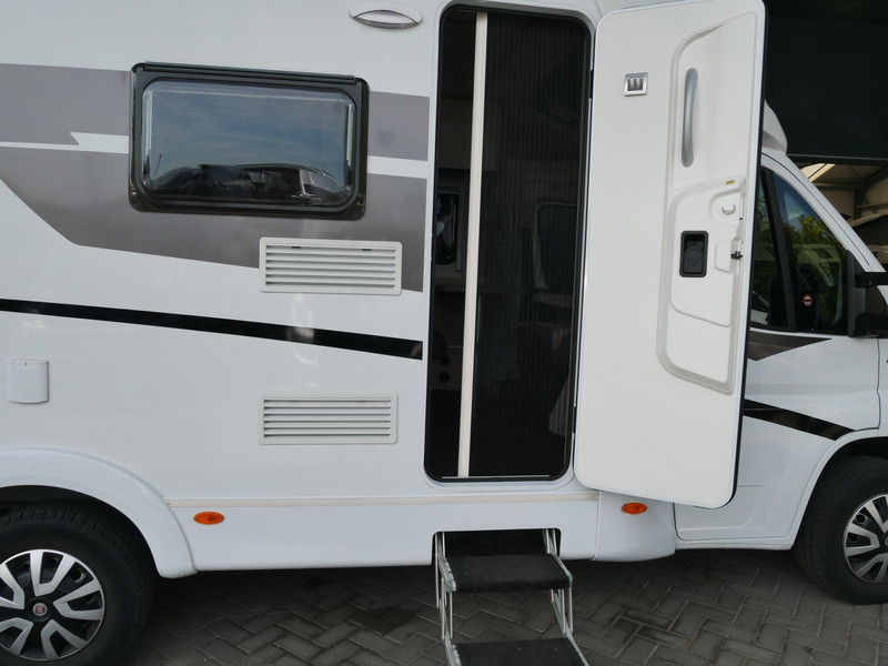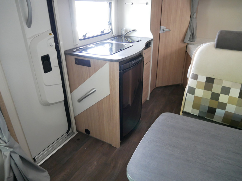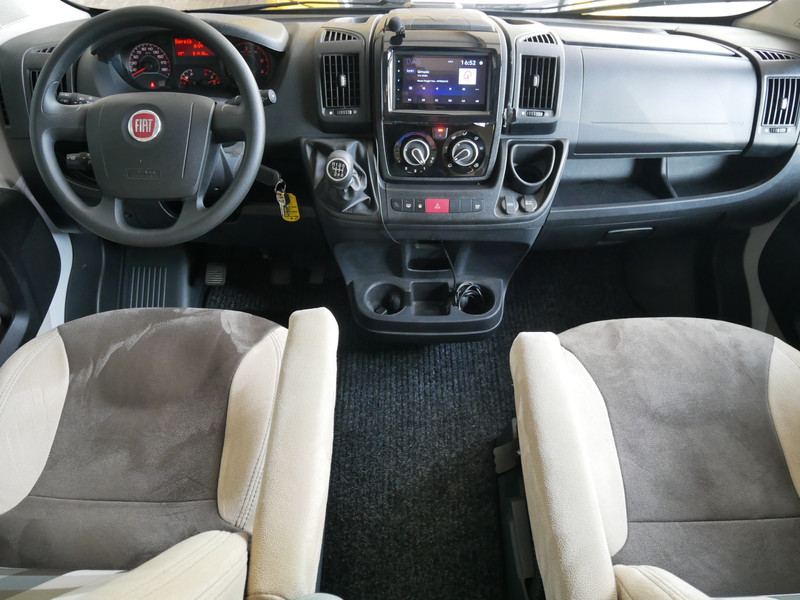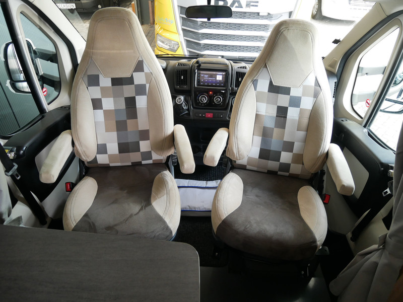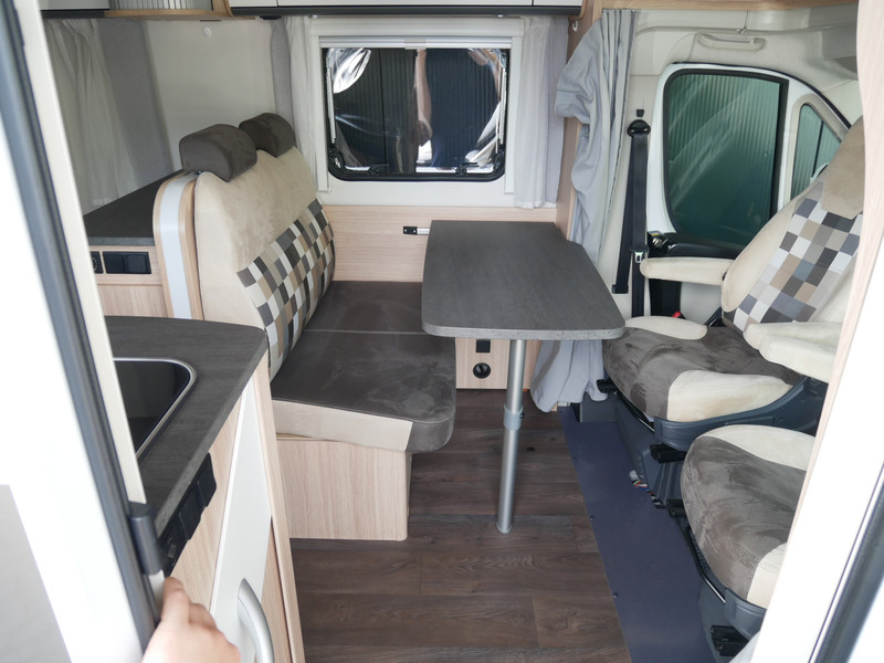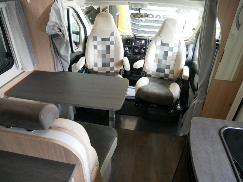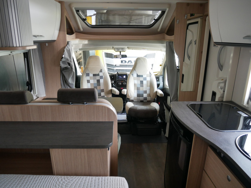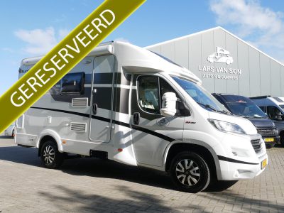 De camper is onder andere voorzien van een mooie en luxe afwerking met stoffen stoelen, moderne houtlook in het interieur, Truma combiketel op gas, luxe ruime keuken met 3 pits kooktoestel, hordeur, elektrische opstap, wasbak, motorairco, zeer veel opbergmogelijkheden in de vele bovenkasten en de grote kast ruimtes, ruime toiletruimte met douche, koelkast met vriesvak, een treinzit met grote tafel, garage onder het fransbed met een garagedeur en cassetteluifel.