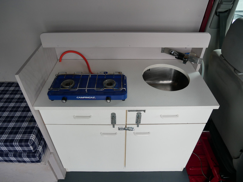 Maten: De camper heeft een stahoogte van 196 cm en dwarbed 120 X 190 cm.