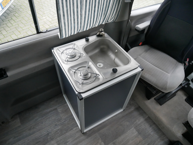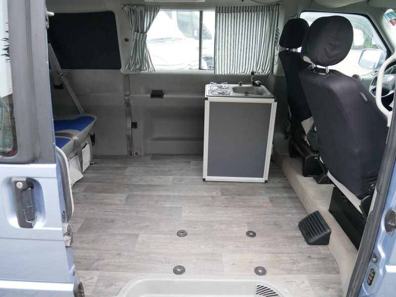 Het betreft een basiscamper met daarin basis voorzieningen als: Extra plat hefdak voor staruimte, keukenblok met een 2 pits kooktoestel en wasbak, vuil en schoonwater jerrycans, gasfles, 3 zit achterbank, 2 persoons bed ombouw door bank om te klappen en een 230 V buitenaansluiting.