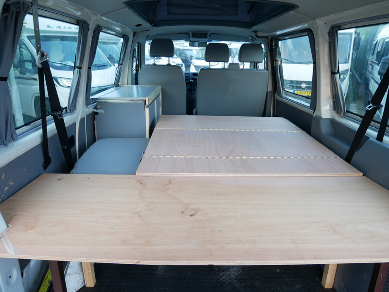 Het betreft een basiscamper met daarin basis voorzieningen als: simpele Reimo Klapdak voor staruimte, keukenblok met een 2 pits kooktoestel en wasbak, vuil en schoonwater jerrycans, gasfles, 3 zit achterbank, 2 persoons bed ombouw door bank om te klappen, eettafel.
