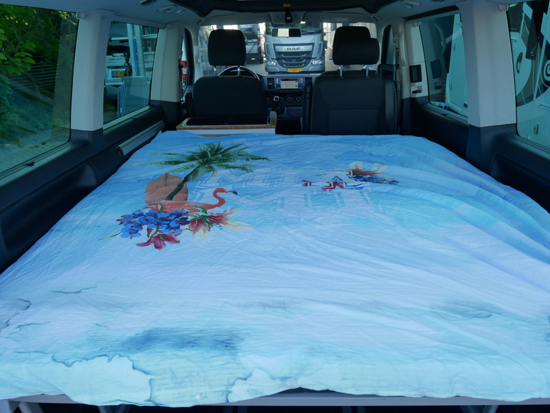 De buscamper is onder andere voorzien van 4 slaapplaatsen, Easy fit slaaphefdak van Reimo met het luxe bed (schotels), DSG Automaat, airco, stoffen bekleding, stoelverwarming, elektrische schuifdeur, lendensteun verstelling, elektrische ramen voor, elektrisch verstelbare spiegels, parkeersensoren voor en achter, Android Auto/ Apple Carplay, in hoogte verstelbare voorstoelen, bluetooth functie, navigatie, keukenblok, 1 pits gastoestel en wasbak.
