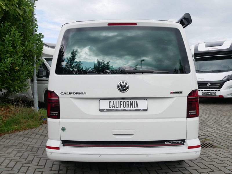 De Edition uitvoering bevat onder andere: grille met chroomlijsten, ramen cabine dubbel glas, ramen achter extra getint, lichtmetalen velgen Aracaju 17", dagrijlicht met automatische lichtschakeling, buitenspiegels in Deep Black, ruitenwisser met regensensor, donkere LED achterlichten, buitendouche achterin, verlicht Edition embleem bij instap, heerlijk comfortmatras. Naast deze opties is de California nog voorzien van een paar extra opties: digitaal Virtual dashboard, 9" Discover Pro radio- en navigatiesysteem, DAB+ radio, Bluetooth, Streaming en Internet, 8 Luidsprekers, 2 USB-aansluitingen in middenconsole, zwarte Thule luifel, hefdak in zwart uitgevoerd, automatische parkeerfunctie, cruise control ACC met afstandsregeling, front-Assist met noodremfunctie, achteruitrijcamera, DSG Automaat, LED koplampen, LED dag rijverlichting, LED achterlichten,